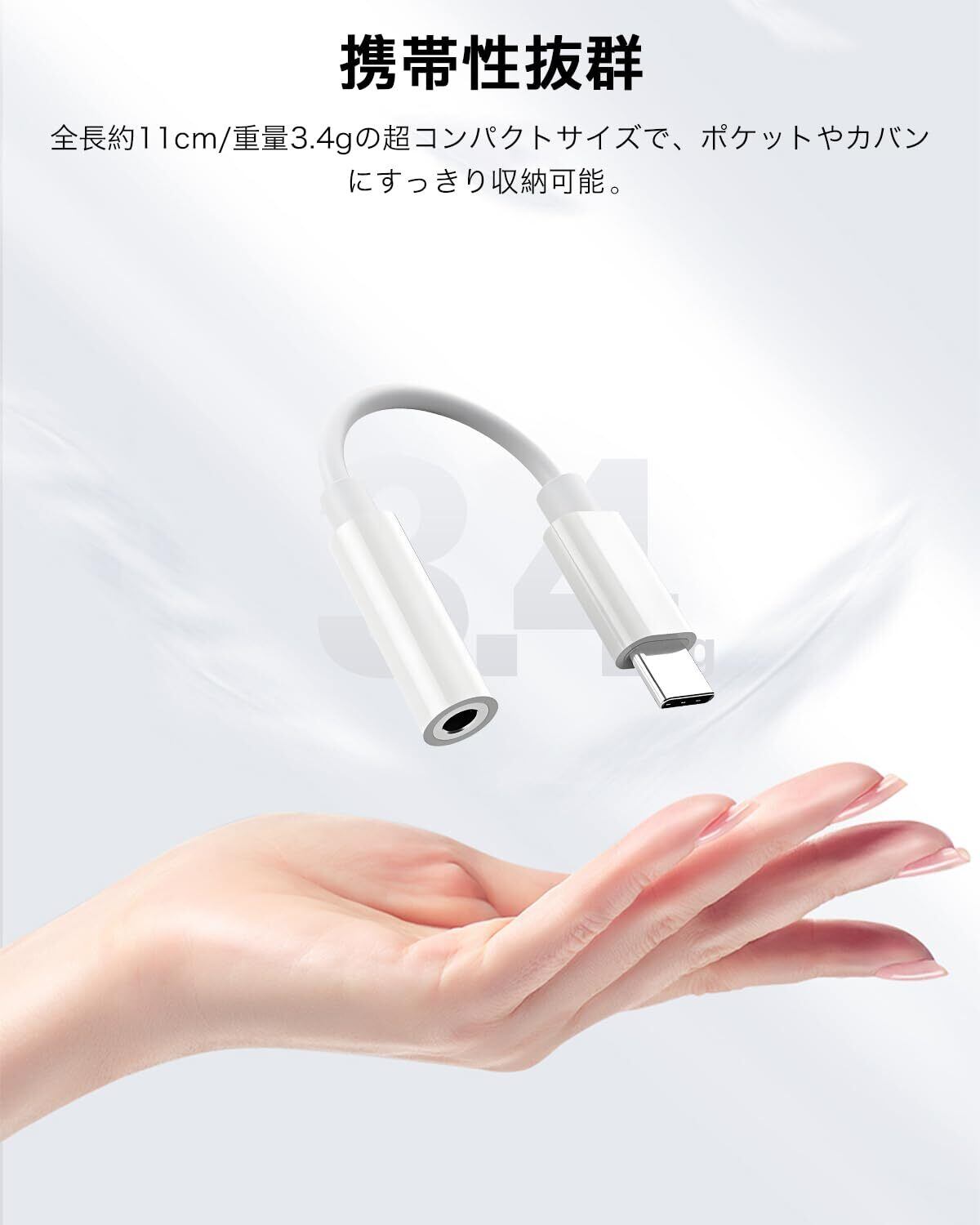 【在庫セール】USB Type-C 3.5mm 変換アダプタ Type-C イヤホンジャック 変換 独立 DAC チップ内蔵 ハイレゾ音質 24bit/96kHz対応 4極/3極兼用 高耐久ケーブル 30,000回屈曲耐久 音量調節/通話/音楽対応 【iPhone17/16/15 シリーズ/iPad Pro/主流 Android 機種対応|一部機種非対応※】