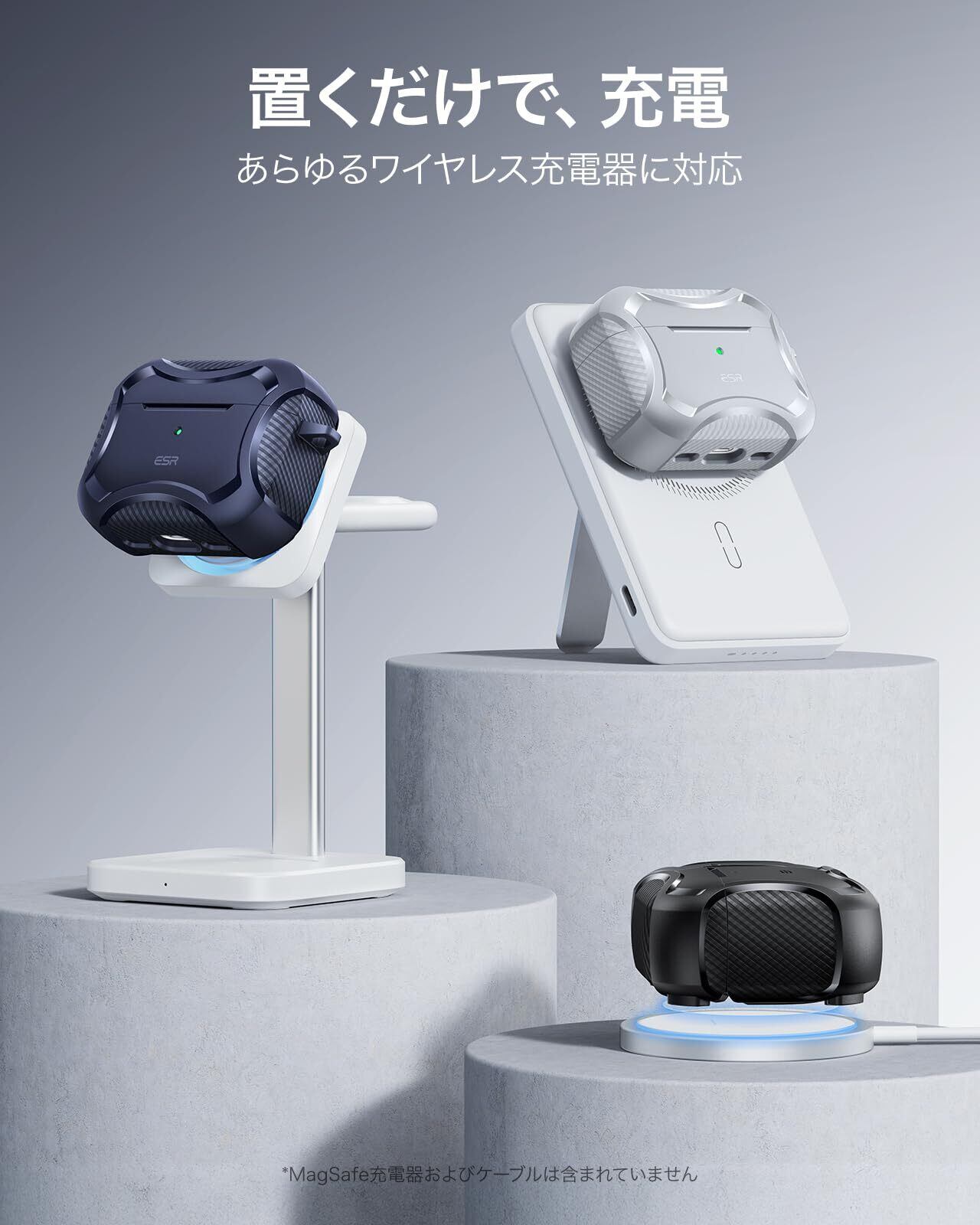 【強力落下保護】:衝撃吸収ポリマーと、エアーガードコーナーが最悪の落下や衝撃から充電ケースを守ります。