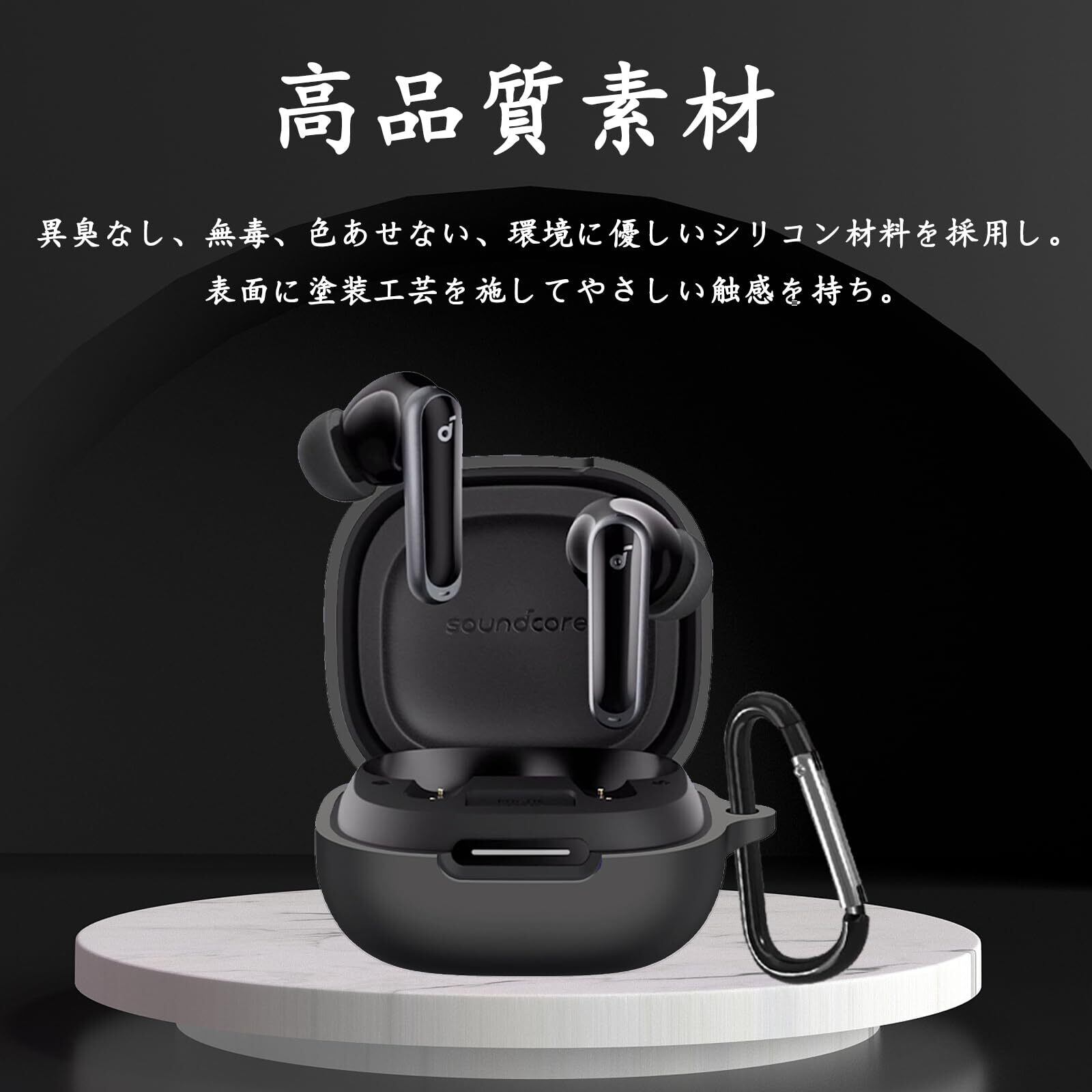 For Anker Soundcore P40i ケース P40i 保護カバー P40i ケース 柔らかい シリコン製 落下防止 キズ防止 耐衝撃 防塵 軽量 装着充電可能 カラビナ付き 紛失防止(ブラック)