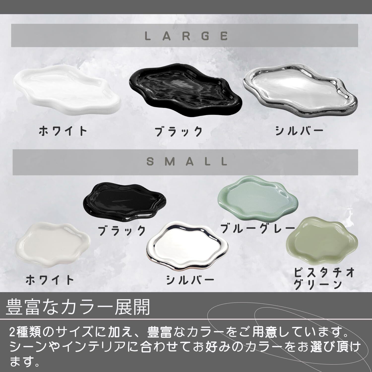 使い方自由自在!マルチユース設計 アクセサリートレイとしてだけでなく、玄関の鍵置き、デスクの文具トレイ、ソープディスペンサーの下など、アイデア次第で何役にも。