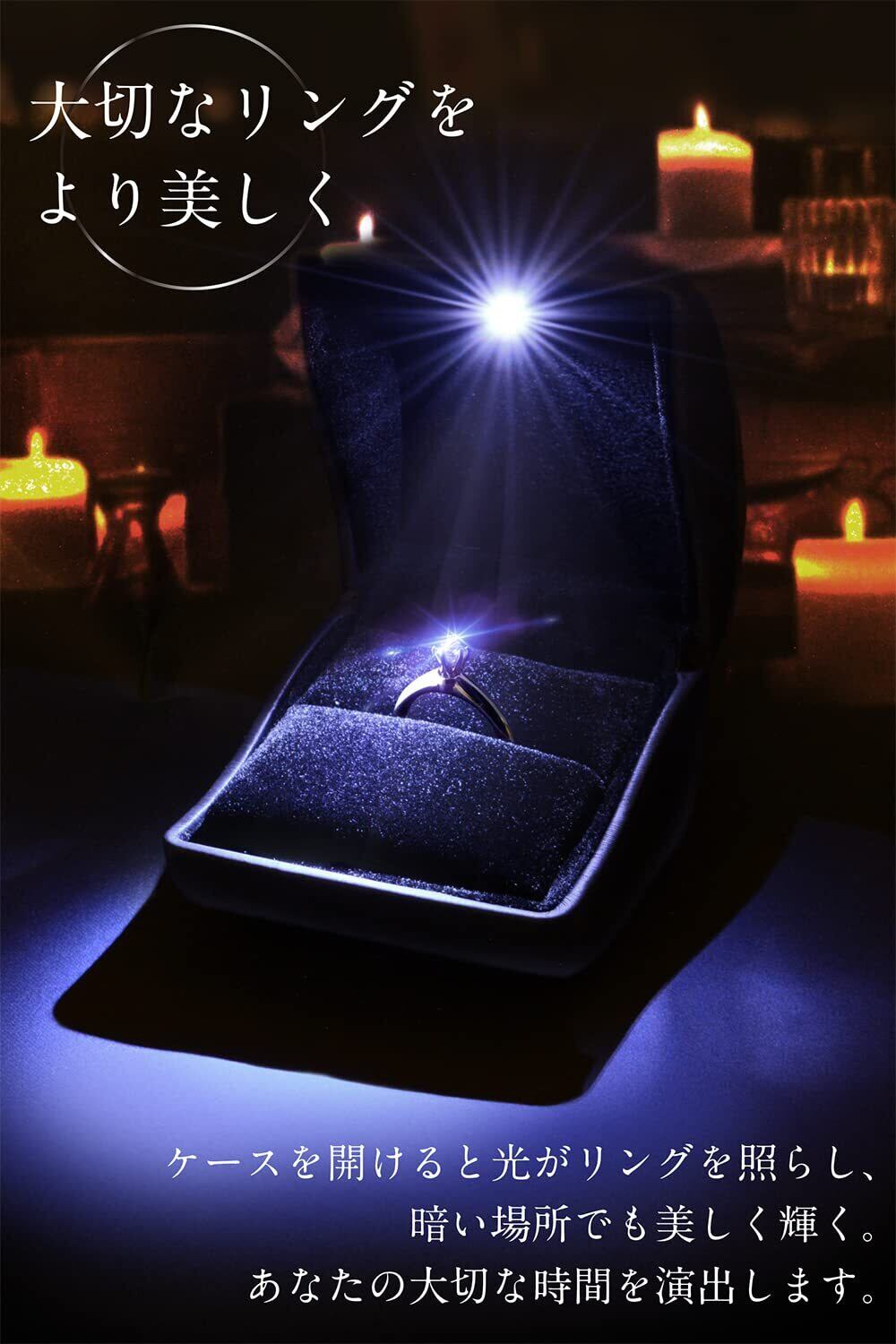 【LED付きの指輪ケース】プロポーズやプレゼント時に最適なLED指輪ケース!ジュエリーボックを開けると、LEDの光が指輪にさし込み、暗い場所でも指輪を綺麗にライトアップしてくれる優れもの!大切なリングをより美しく輝かせます。