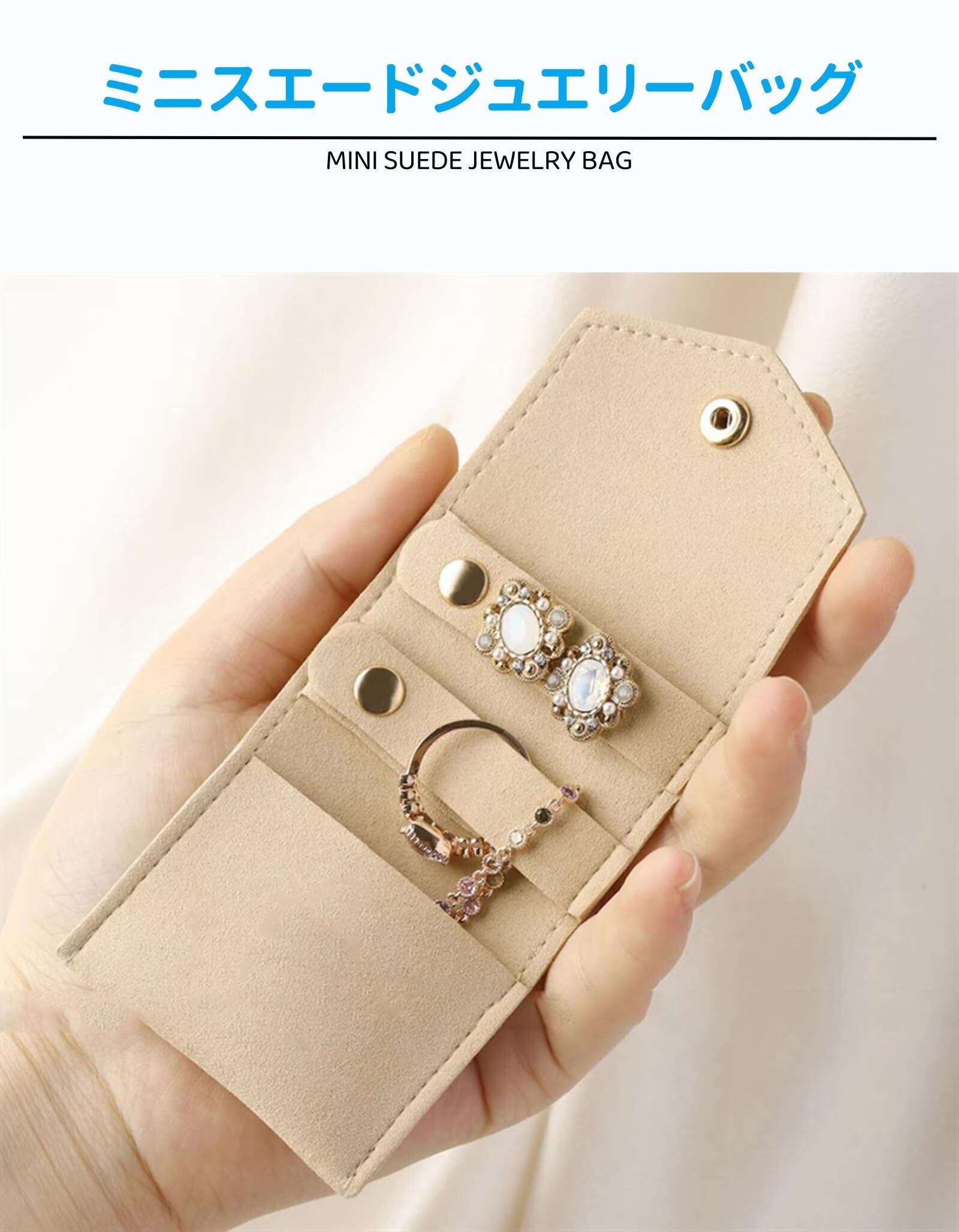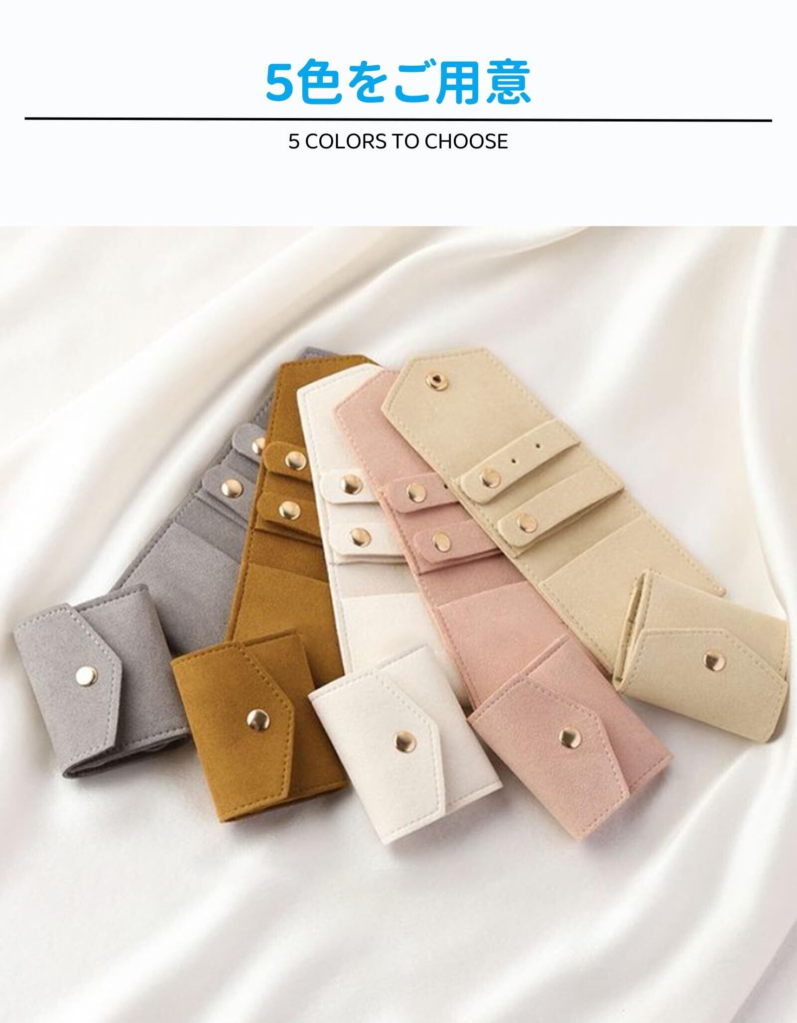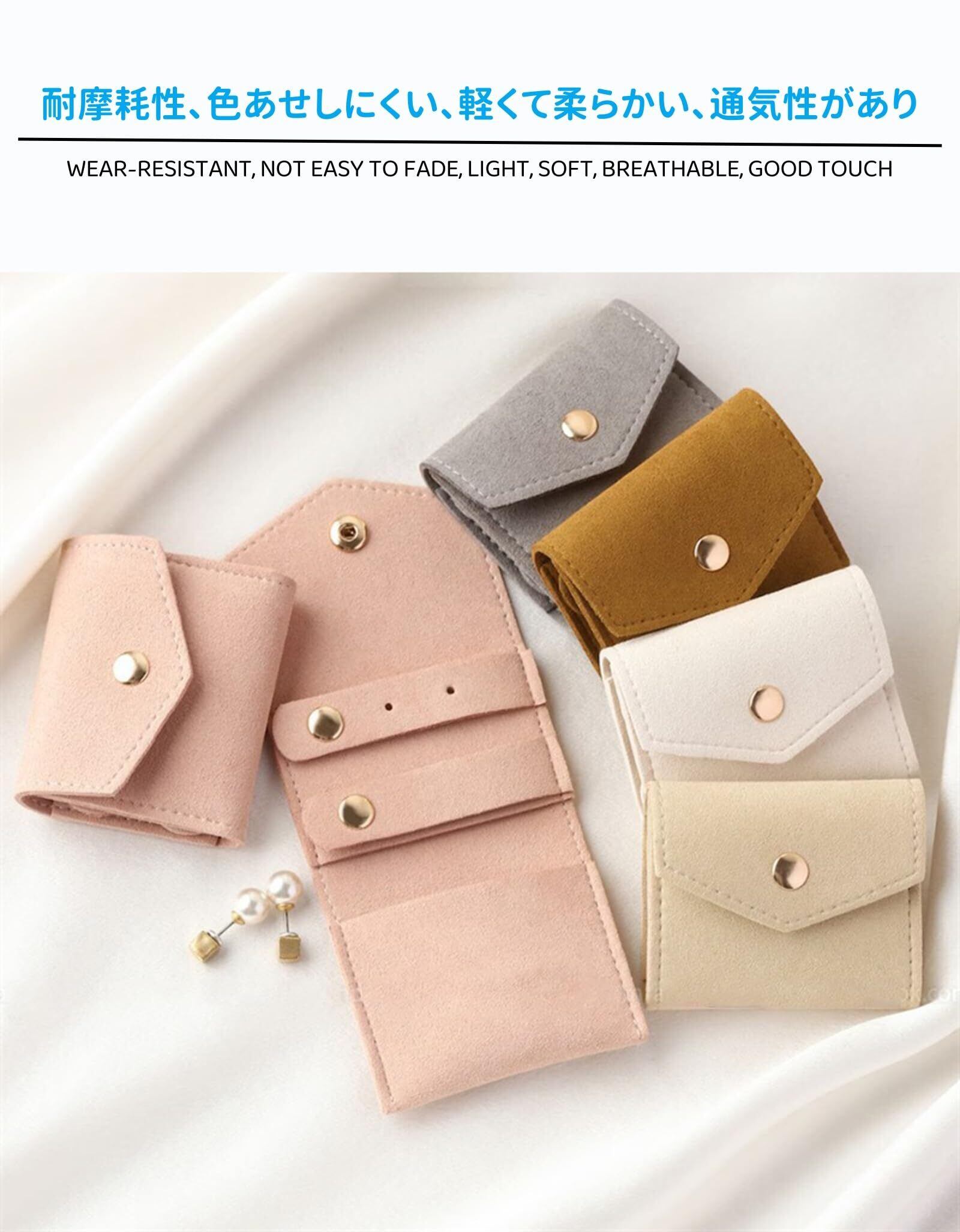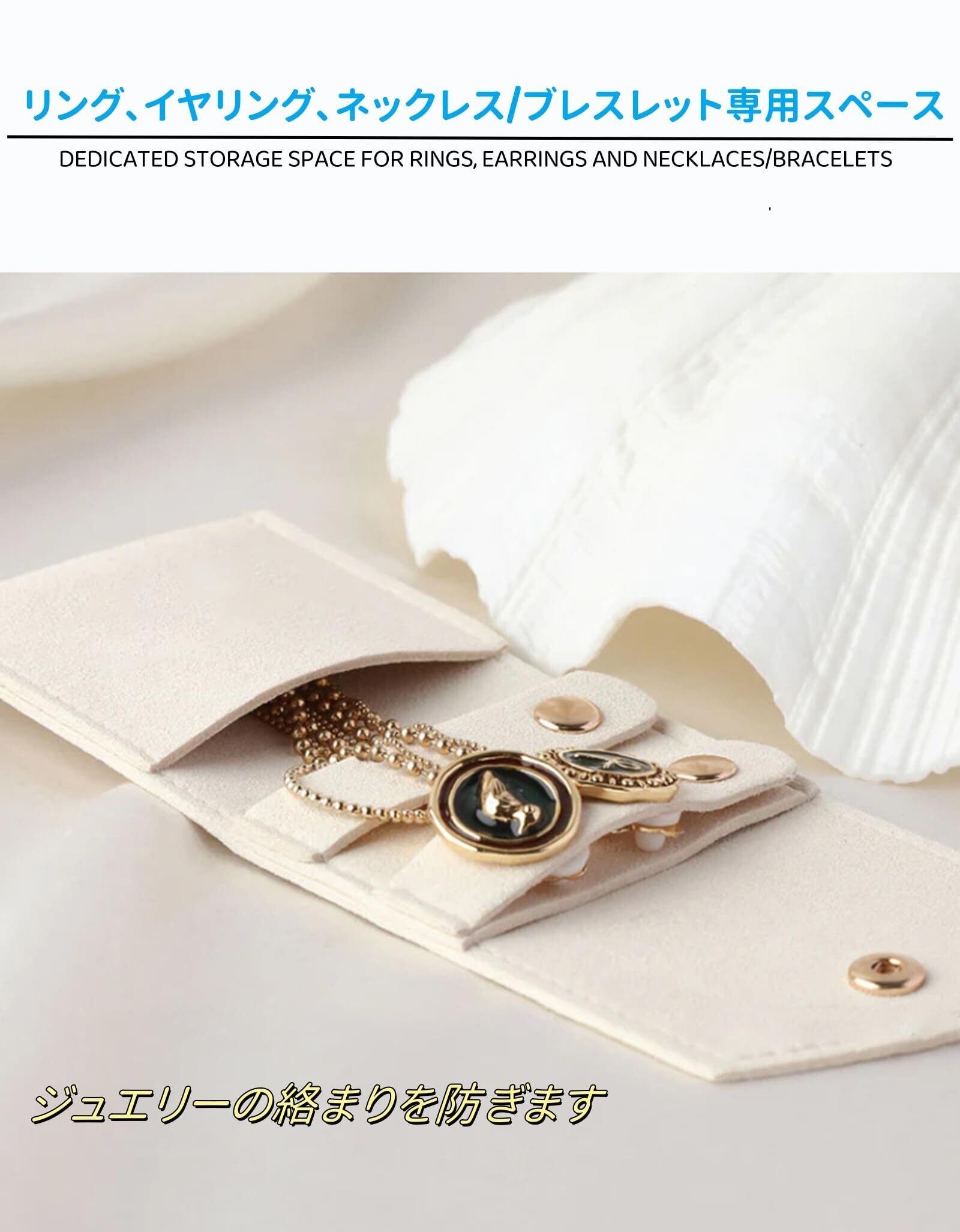 【柔らかい素材で安心収納】大切なアクセサリーを傷つける心配がありません。リングやイヤリングなど、さまざまなジュエリーを優しく包み込んで、安心して持ち運べます