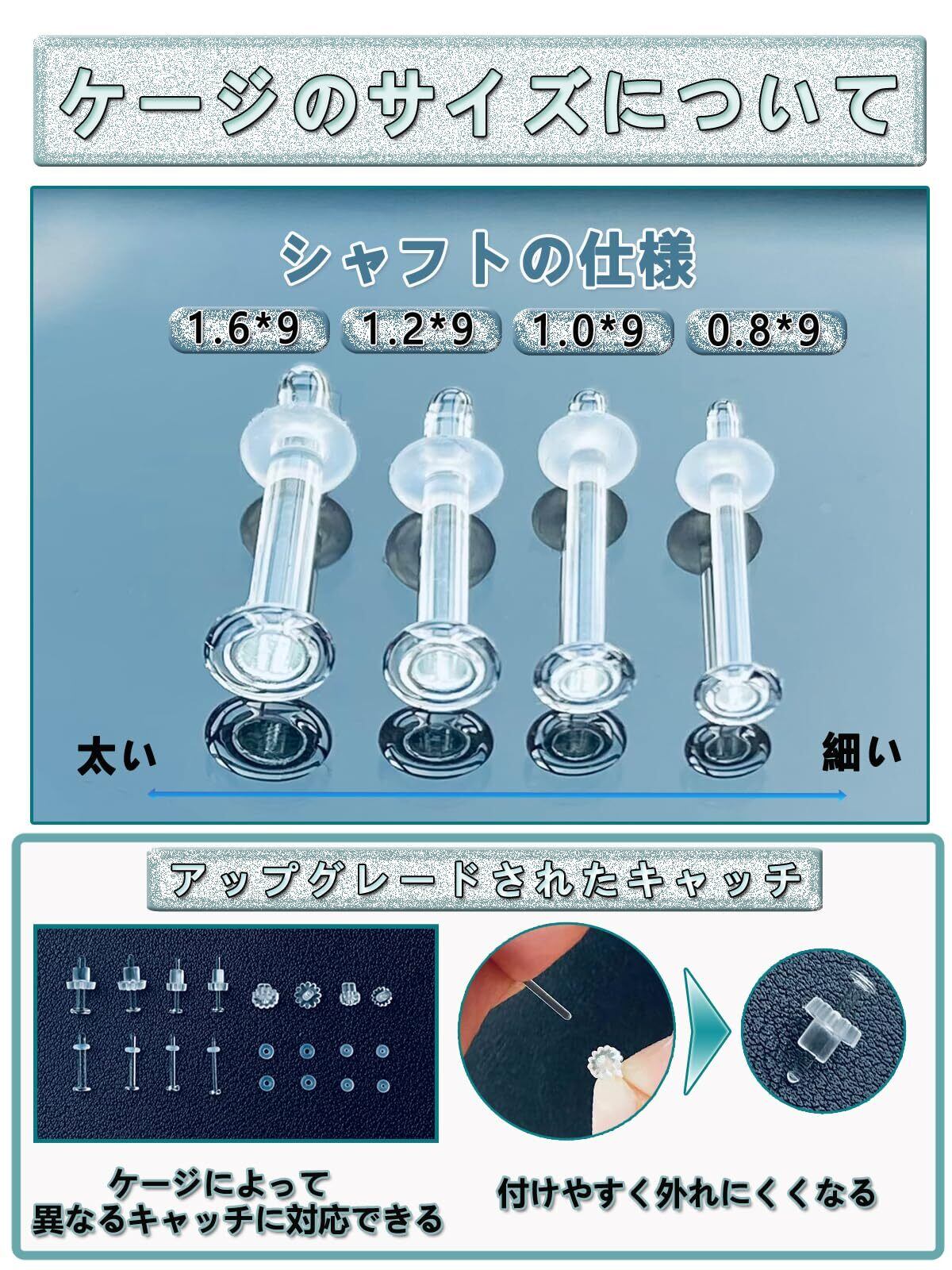 【22個シリコンキャッチ】22個予備用のピアスキャッチ付き、「キャッチが付けられない」「予備用に持っておきない」「いつの間にか透明ピアスとキャッチが紛失しちゃう」などの購入者からの心配を気楽に解決していただけます。シリコン製キャッチなので、脱着しやすいし、長さも調節可能です。