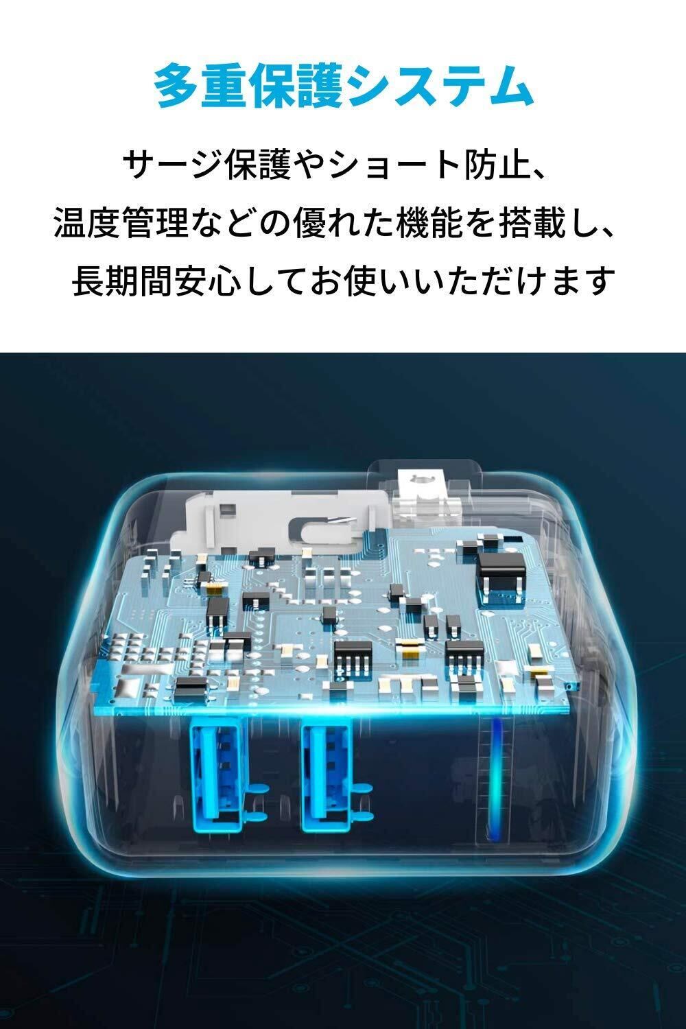 より速い充電を:Anker独自の充電技術であるPowerIQおよびVoltageBoostを搭載し、どのような機器に対しても各ポート最大2.4Aの最適な充電スピードを出力します(一般的な5W出力の充電器に比べ、急速充電となりますが、Power DeliveryやQuick Charge等の充電規格に対応してません)。