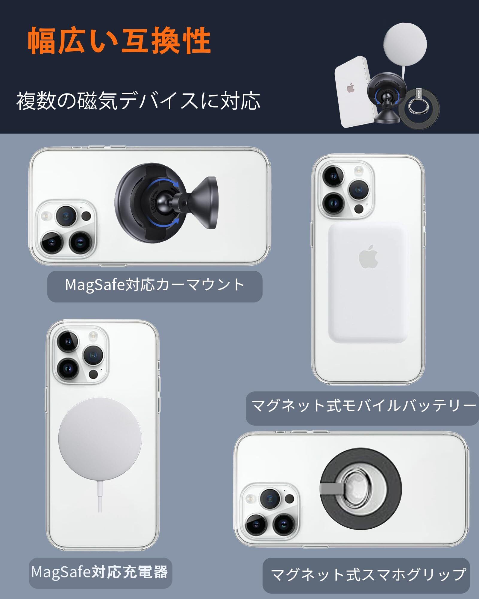 【幅広い互換性】iPhone 17/16/15/14/13/12シリーズ、iPhone X/XS/8 Plus、Samsung Galaxy S8〜S24、Note8〜Note20など、ほとんどのQi対応デバイスと互換性があります。magsafe シール 強力と組み合わせることで、非磁性デバイスにも強力な磁力を提供し、Kindleなどにも適用可能です。