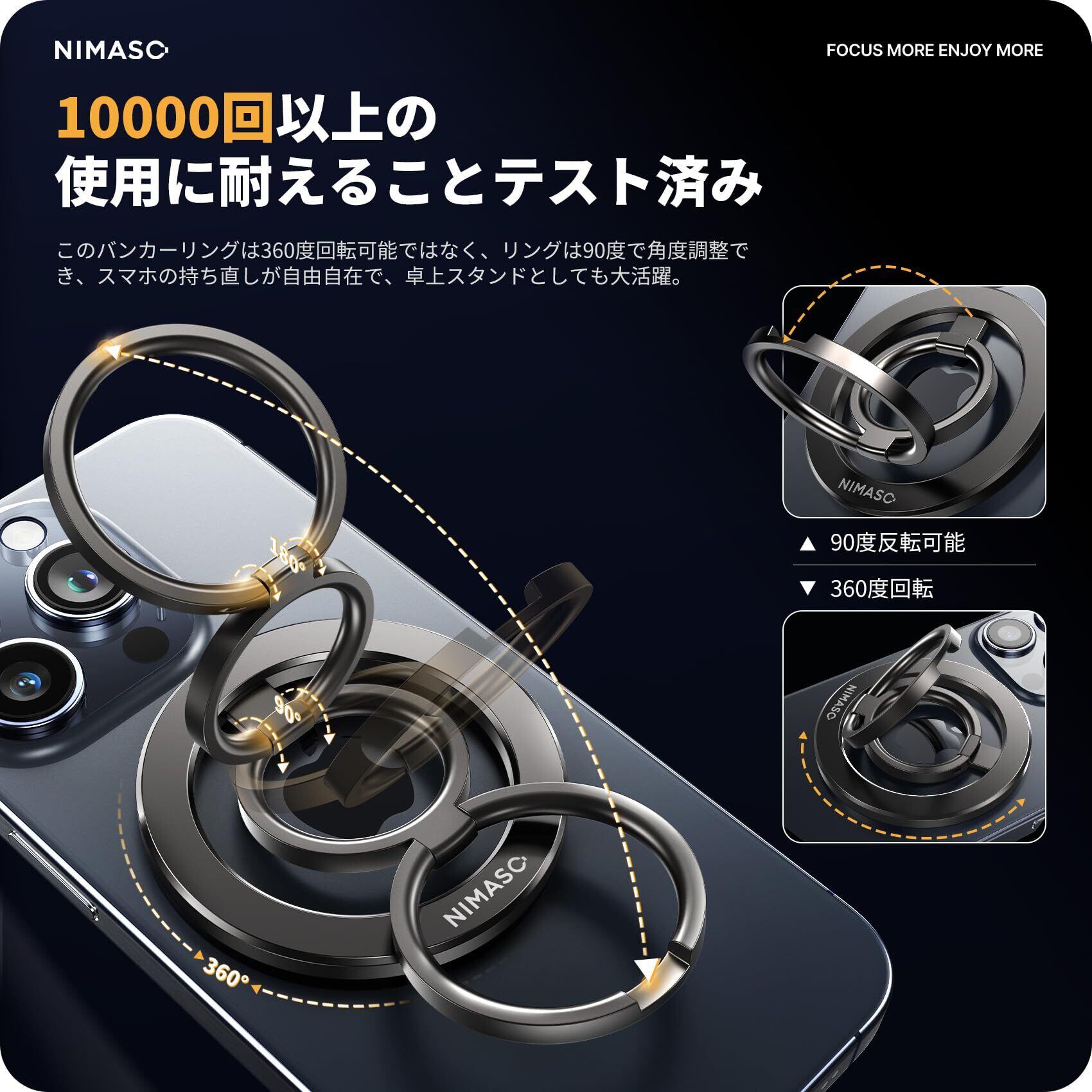 NIMASO スマホリング MagSafe対応 スマホリング マグネット式 スマホ落下防止 角度調整可能 金属リング付き iPhone16/15シリーズ、Androidなど全機種対応(ブラック)