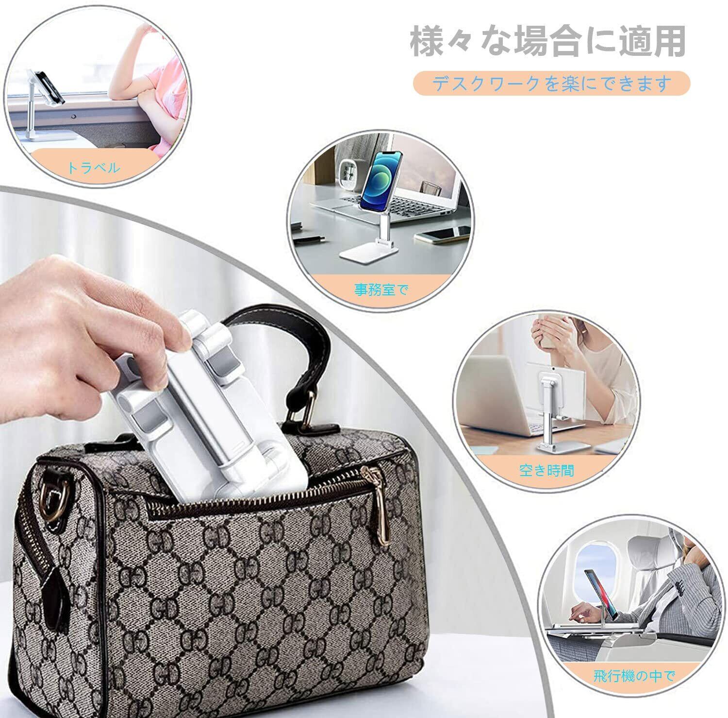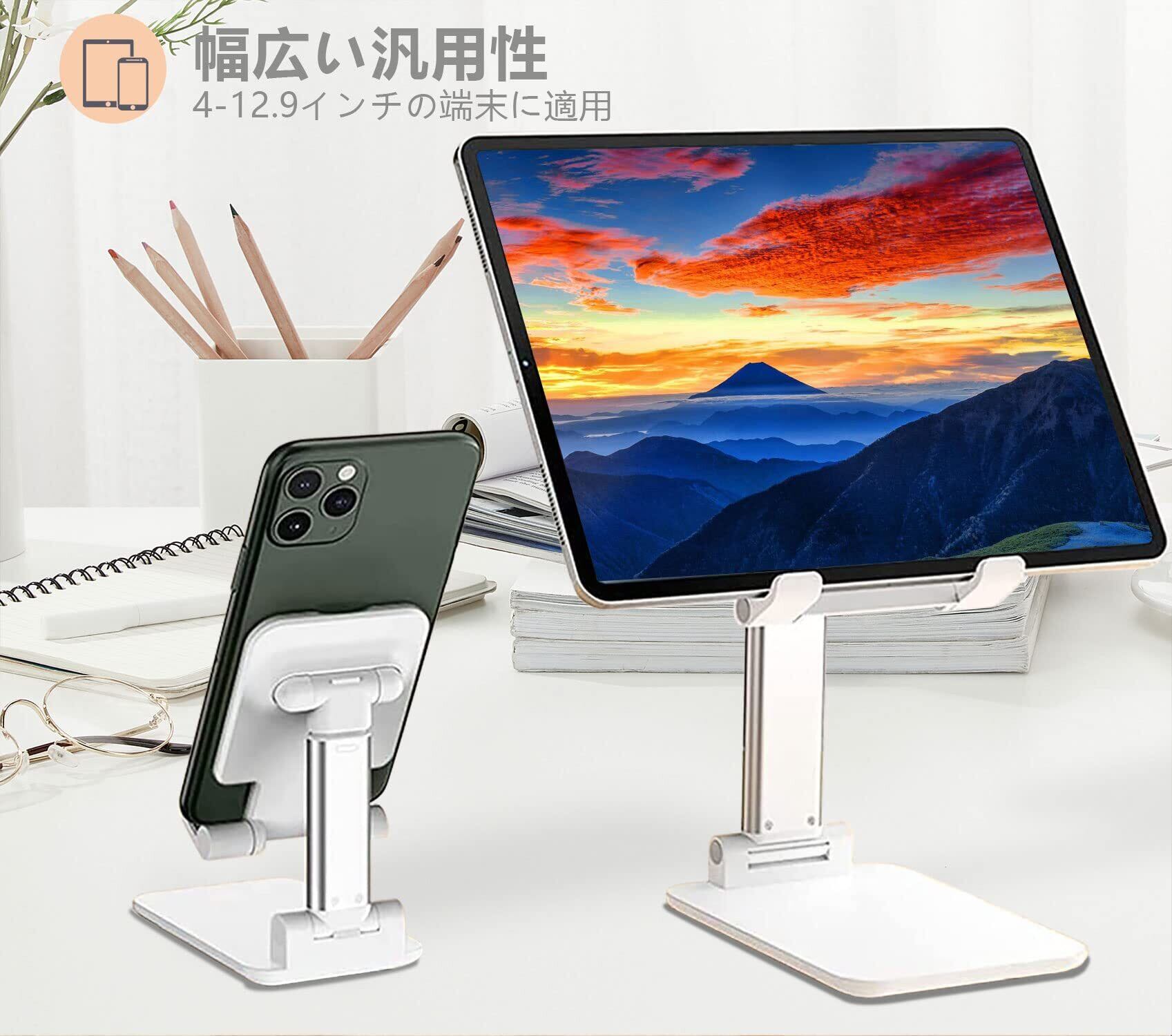 スマホスタンド 卓上 スタンド ホルダー 高度調整可能 スマホ スタンド おりたたみ 滑り止め 携帯 スタンド For iPhone/ipad/Switch/Samsung/Sony/Nexus/Kindle/Android(ホワイト) 2個セット