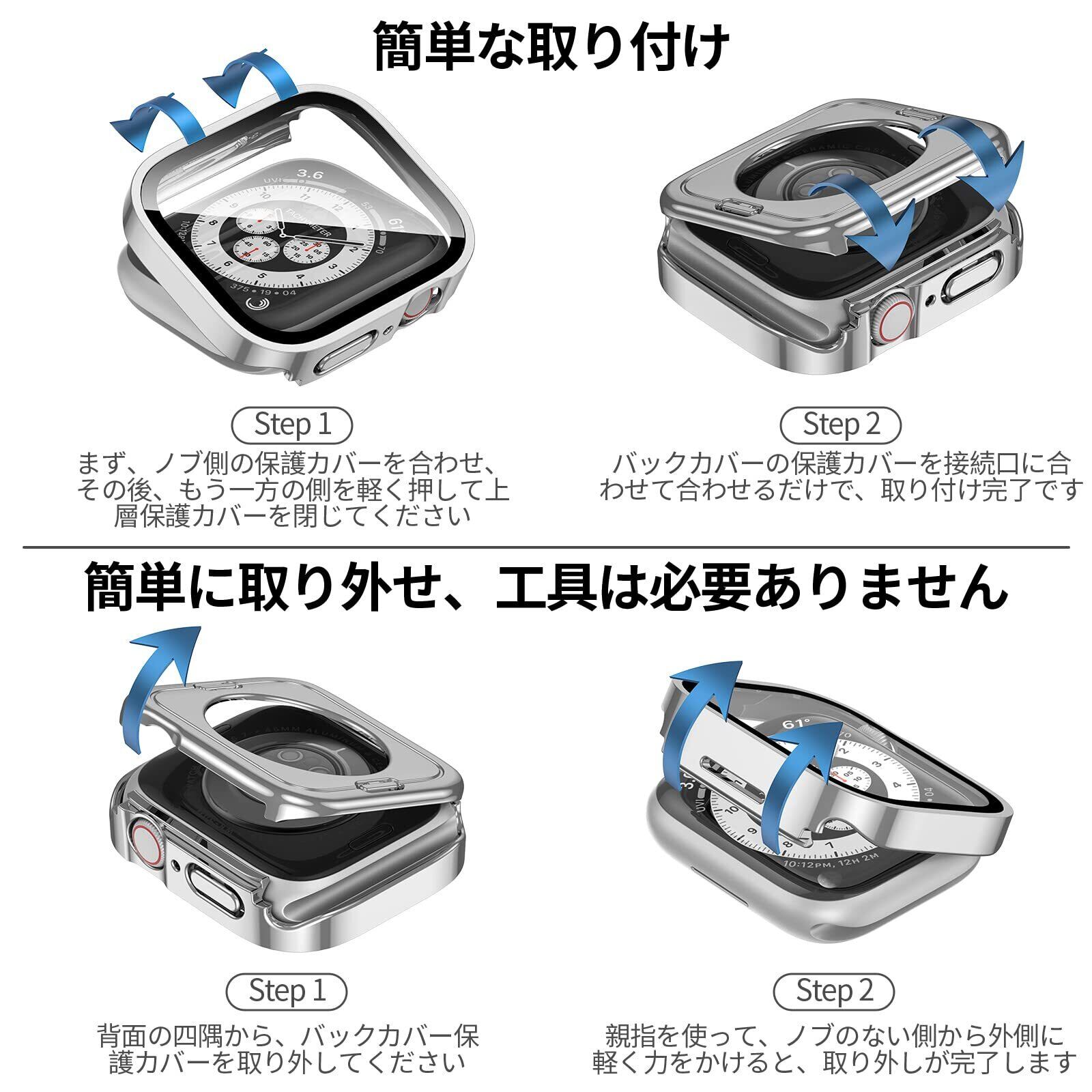 【フルカバー保護】Kawoco アップルウォッチ 防水 カバー Apple Watch SE Series 6 5 4 対応 44mm ケース 2 in 1 前後の保護 二重構造 耐衝撃 iWatch 一体型 ケース 44mm シルバー