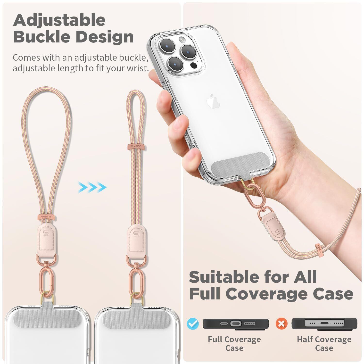 [SURPHY] スマホストラップ 手首 ハンドストラップ 携帯ストラップ 長さ調整可能 携帯電話/カメラ/USBメモリ/鍵マスコット/キーなどにも適応(ピンク)