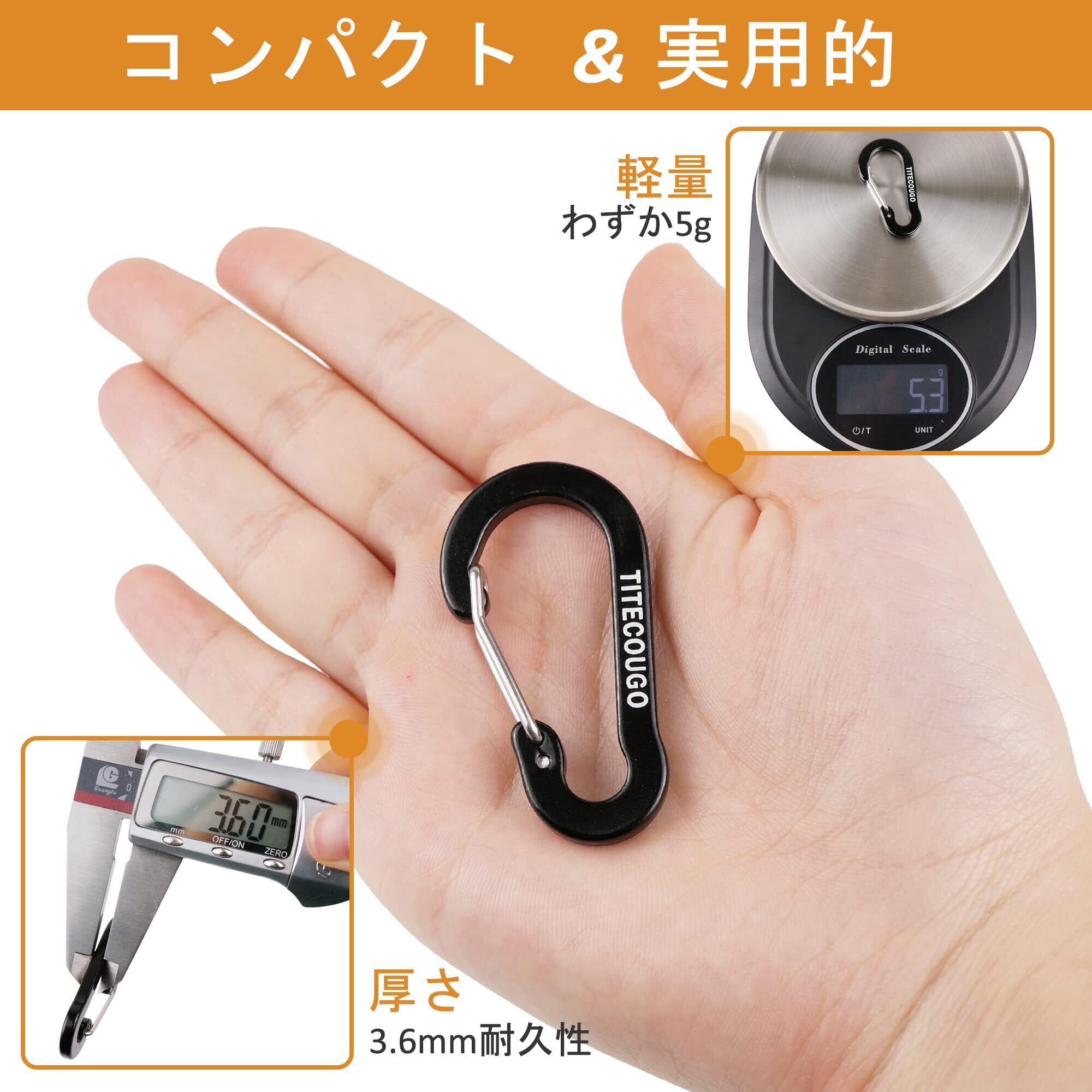 【優れた設計】押すだけに使える設計は誰でも使える,ワンタッチで取り付け簡単です。ベルトに重要な項目を添付することができます。軽くて携帯も便利です,環境保護、錆が出ない、退色しやすくない。コンパクトなD型:アルミカラビナの中で一番強度のある形で、非対称のD型はかける際、ほとんどの重量を背骨の方に移し、他の形状のカラビナよりも大きな強度を提供する。