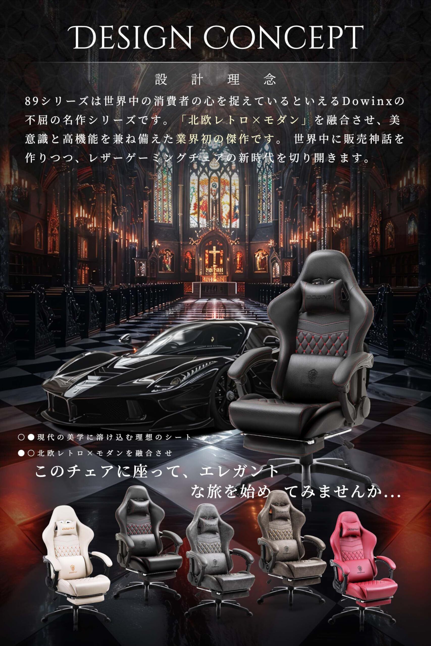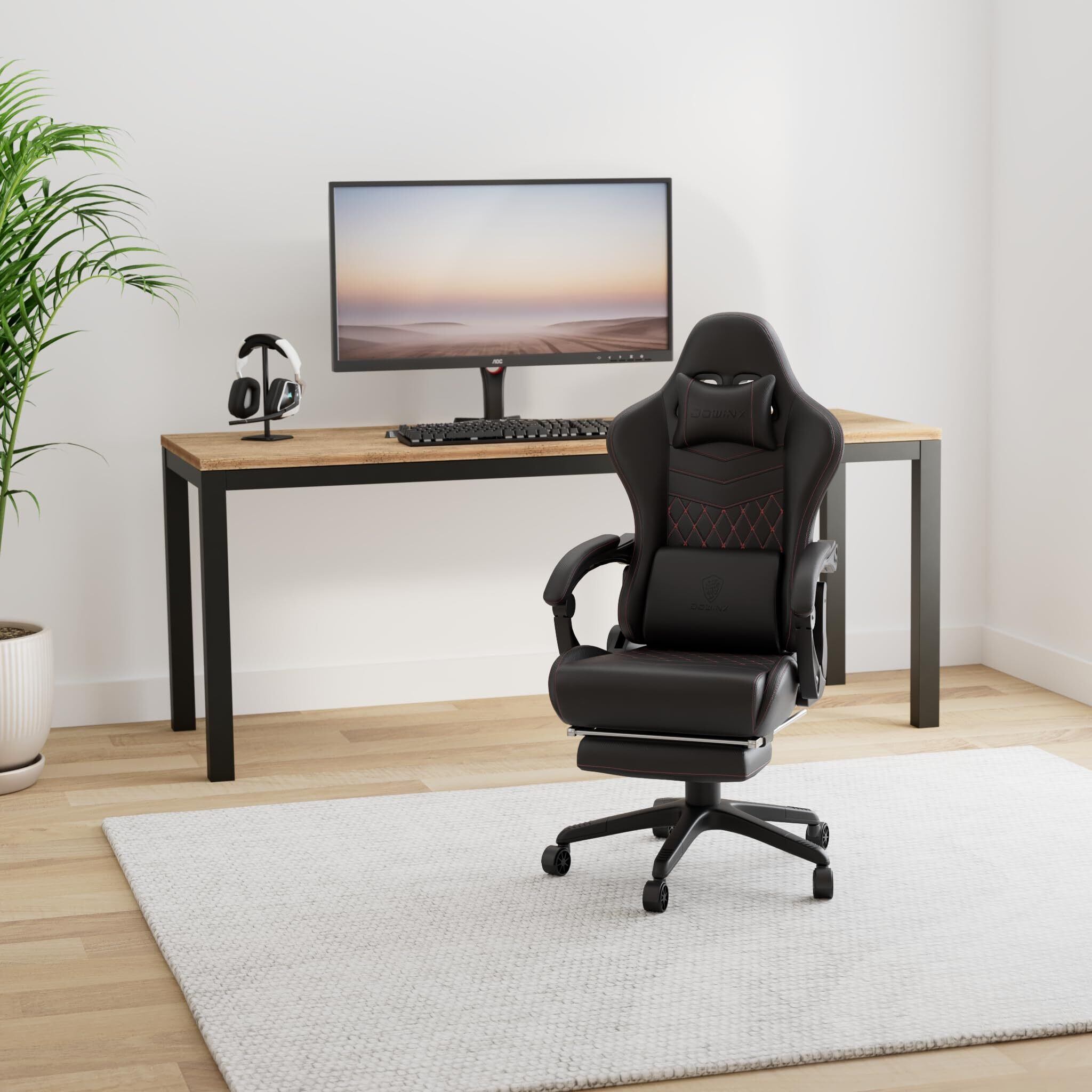 Dowinxゲーミングチェア/オフィスチェア/リクライニングチェア 腰の振動機能 新開発炭素繊維レザー 人間工学 伸縮可能のオットマン 調節可能ランバーサポート (ブラック)