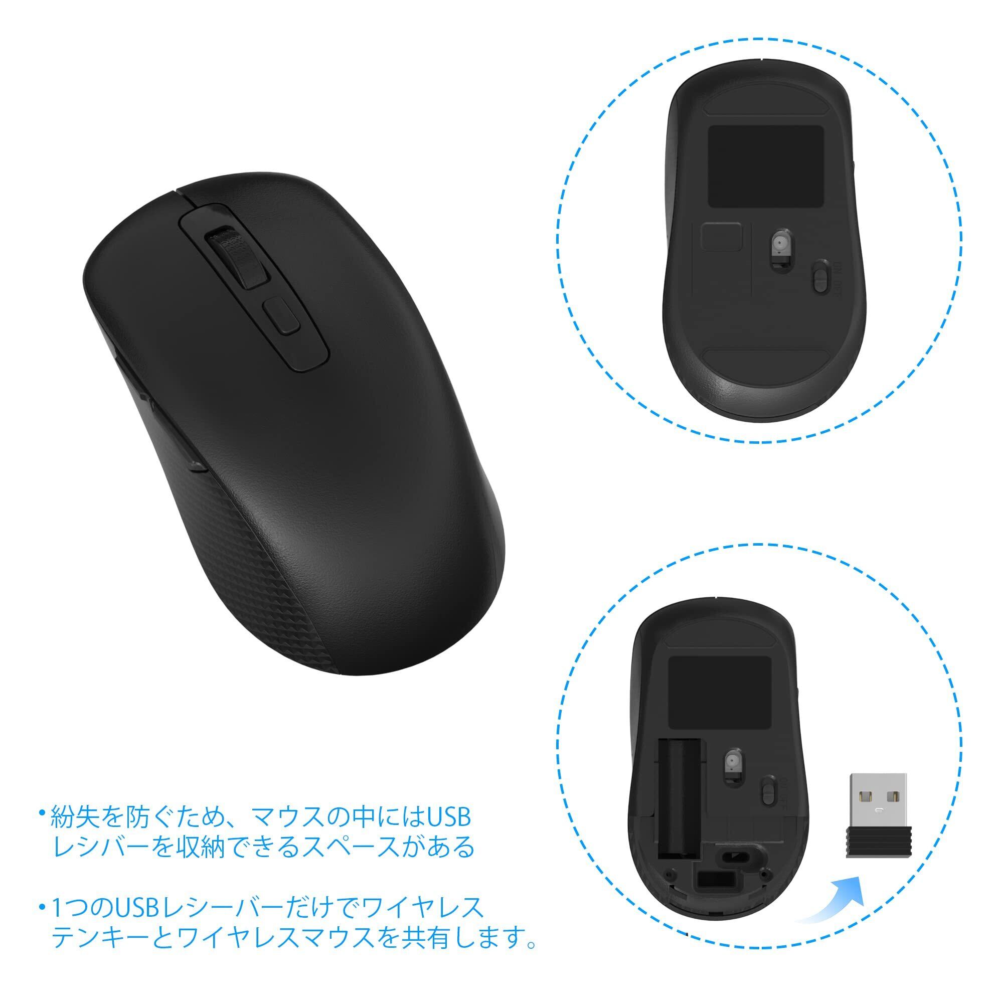 【2.4GHz USBレシバー無線接続】マウスの底に収納スペースに入った一つだけのusbレシバーが、2.4GHzワイヤレスでテンキーとマウスをPCに接続します。プラグアンドプレイ、ドライバーをインストールする必要なく、最大10Mの動作範囲の内に安定な信号伝送がほとんど遅延なしで使用できます。(注1⃣:USBレシーバーはマウスのバッテリーコンパートメントに挿入されています。ご不明な点がございましたら、お気軽に[アカウントサービス]‐[注文履歴]‐[出品者に連絡する]で連絡してください。)