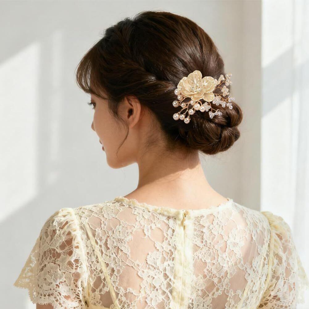 【数量限定】制服小物 フラワー ブローチ+ヘアピン コサージュ 髪飾り 両用 ビーズ プラスチック花びら 胸飾り 服アクセサリー ピン ジュエリー プレゼント 贈り物
