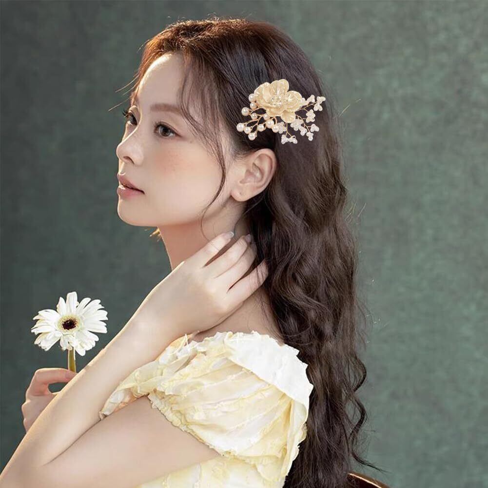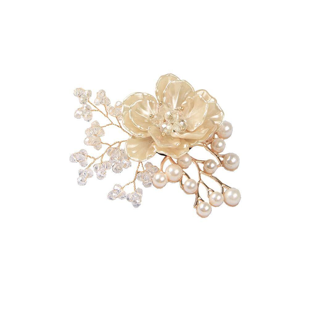 制服小物 フラワー ブローチ+ヘアピン コサージュ 髪飾り 両用 ビーズ プラスチック花びら 胸飾り 服アクセサリー ピン ジュエリー プレゼント 贈り物