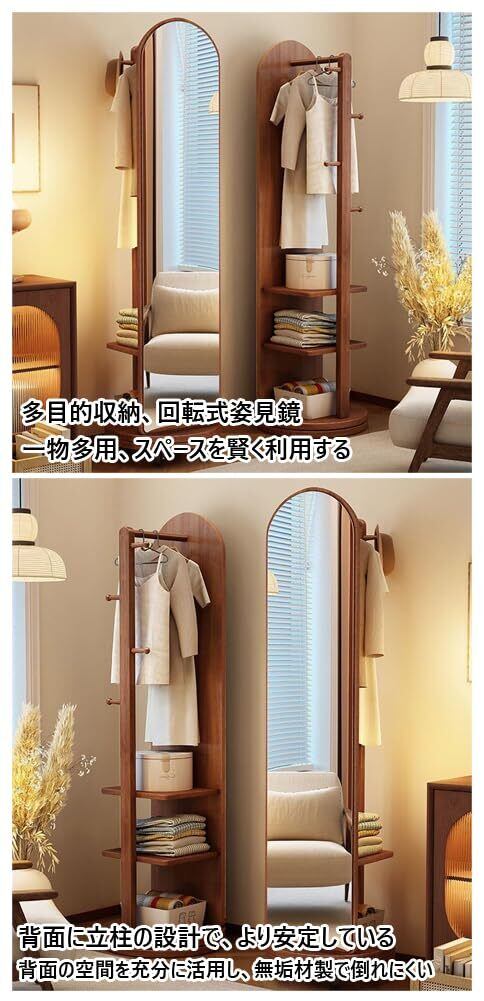 【サイズ】360度回転式:40*40*168cm、50*50*168cm、キャスター付き:40*40*172cm、50*50*172cm。*洋服、帽子やカバンなどを収納しながら、全身の姿を確認できるので、コンパクトな空間で効率的に使用できます。単なる機能的なアイテムとしてだけでなく、装飾的な要素としても活用されます。