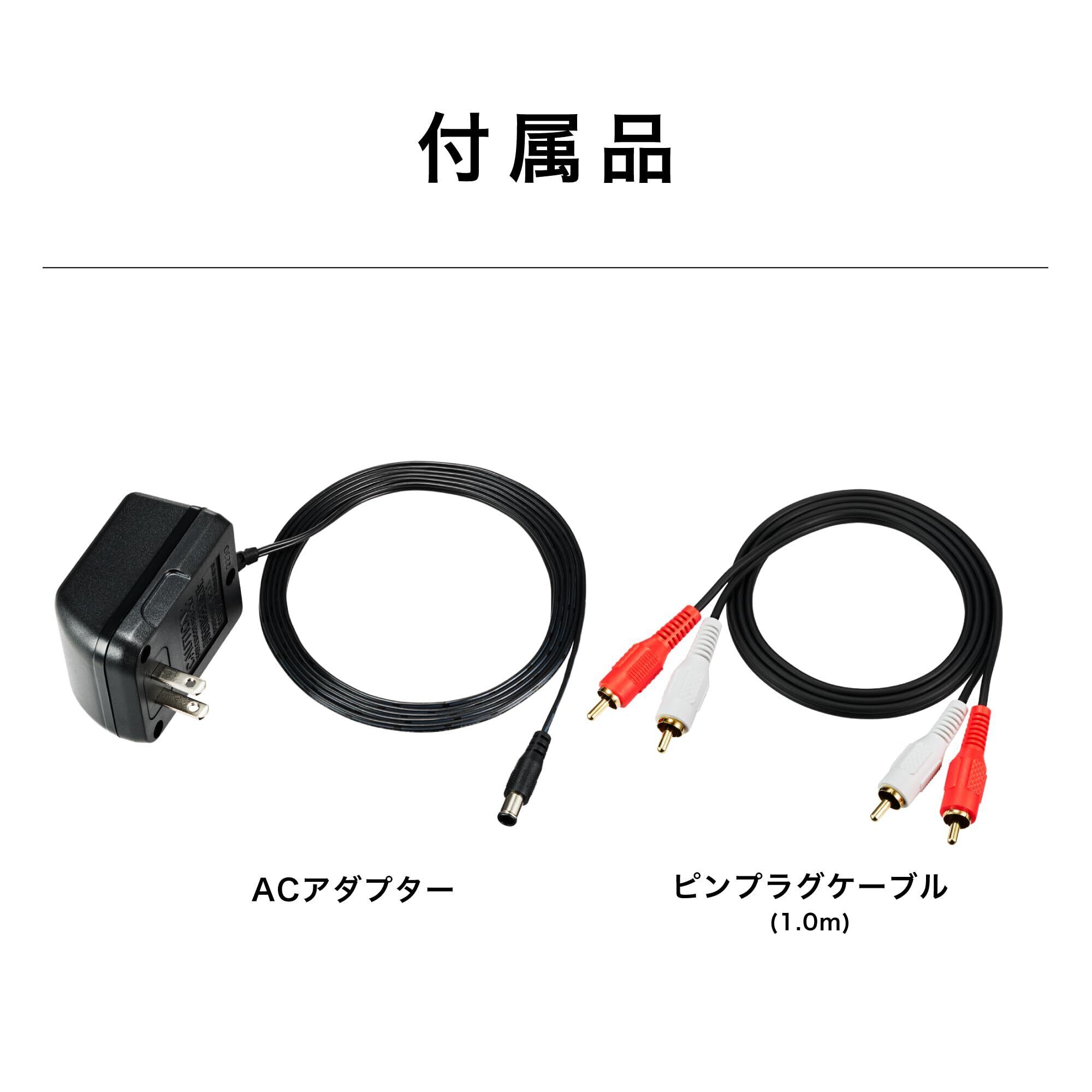 1.0m 接続ケーブル(ピンプラグ⇔ピンプラグ)、ACアダプターを付属しております。