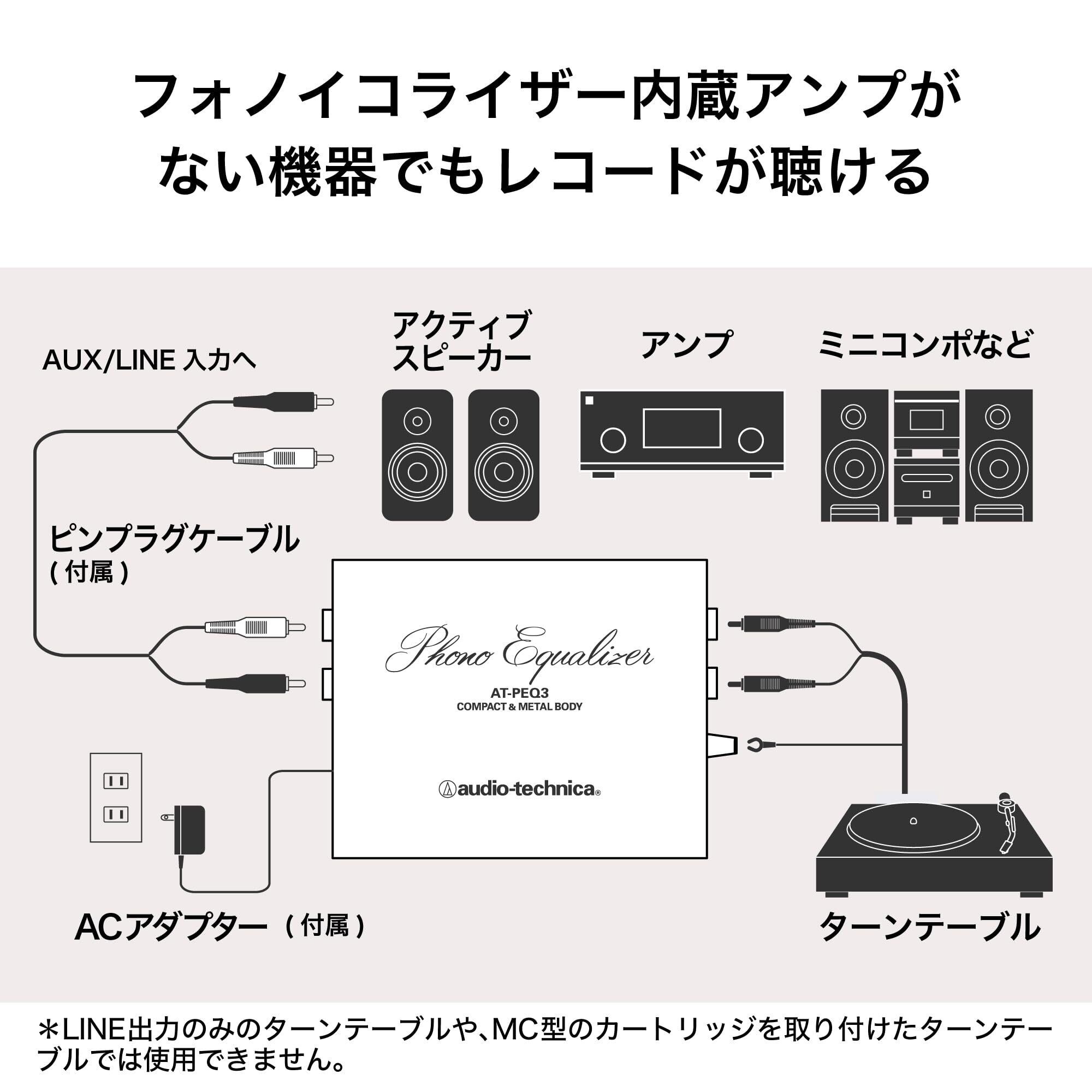 オーディオテクニカ AT-PEQ3 フォノイコライザー フォノプリアンプ レコードプレーヤー ターンテーブル VM/MMカートリッジ対応 軽量/コンパクト/金メッキジャック/RCA出力/1.0m 接続ケーブル ACアダプター(15V)付属