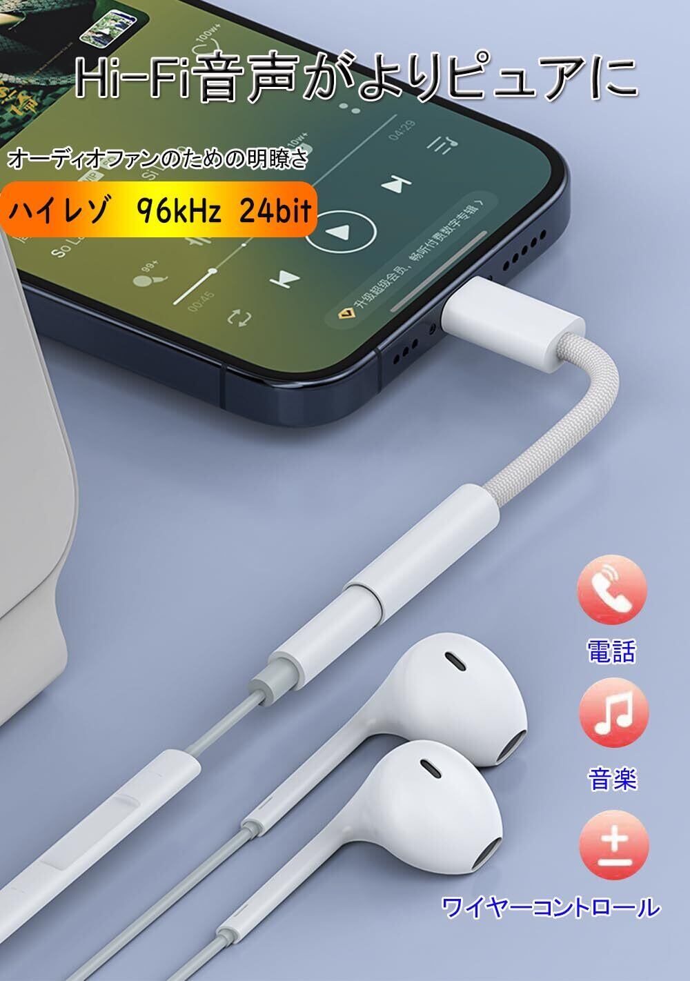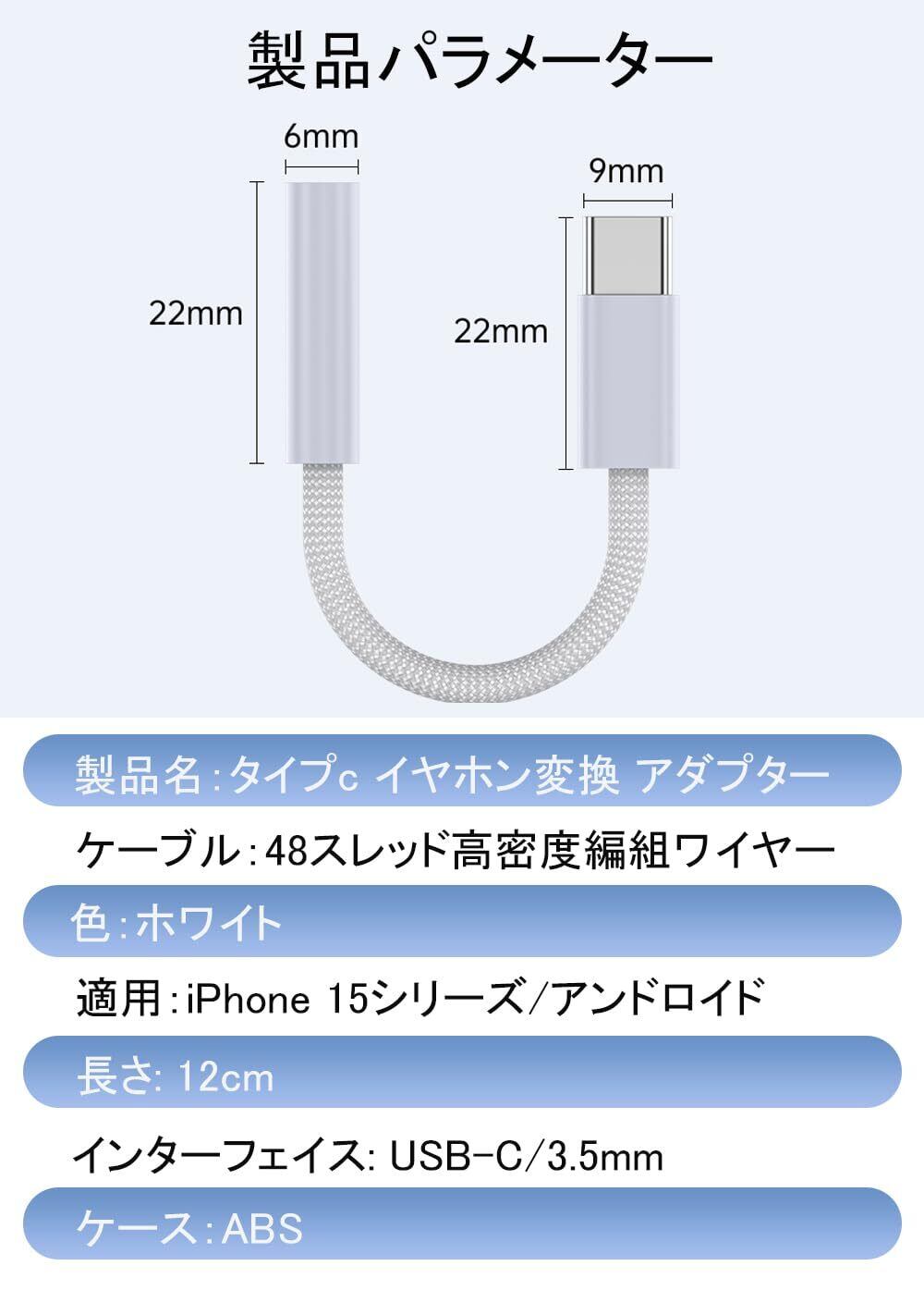 タイプc イヤホンジャック 変換 オーディオ 変換 USB C 3.5mm 3極 4極 イヤホン変換アダプター 音量調節/通話/音楽対応 DAC搭載 24bit/96KHz対応 高耐久性 強化編組ナイロンケーブル Phone16,15 シリーズ/Pad/Mac/Android/Type Cなど機器に適用
