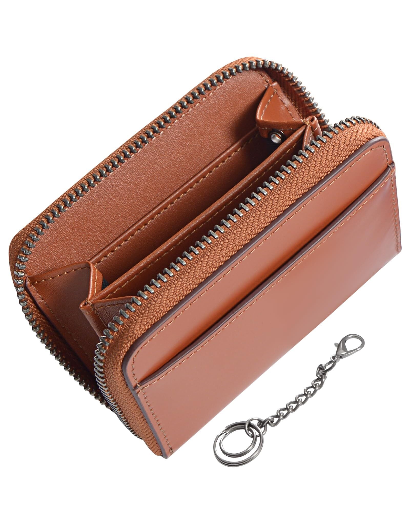 LUOLUO 小銭入れ メンズ 本革 コインケース イタリアンレザー 鍵 カード入れ付き YKKファスナー 小銭ケース 小さい 財布コンパクト こぜにいれ 大容量 レッド (ブラウン)
