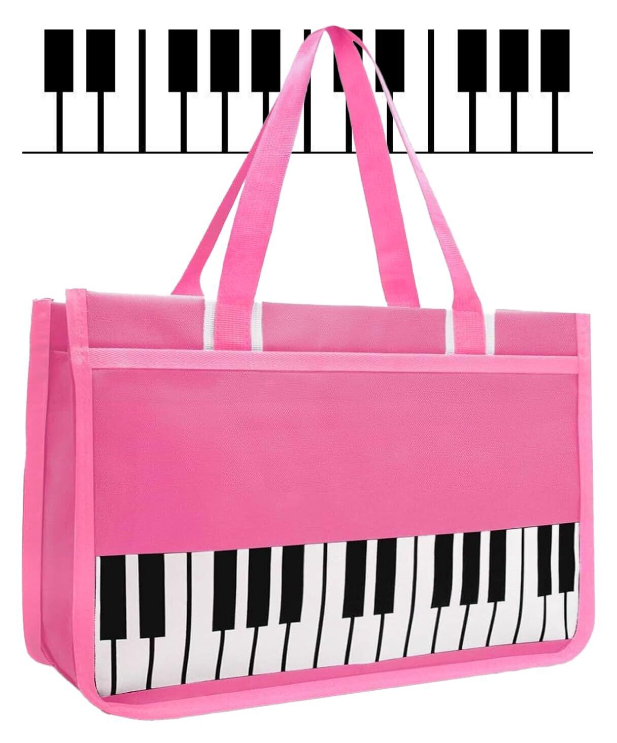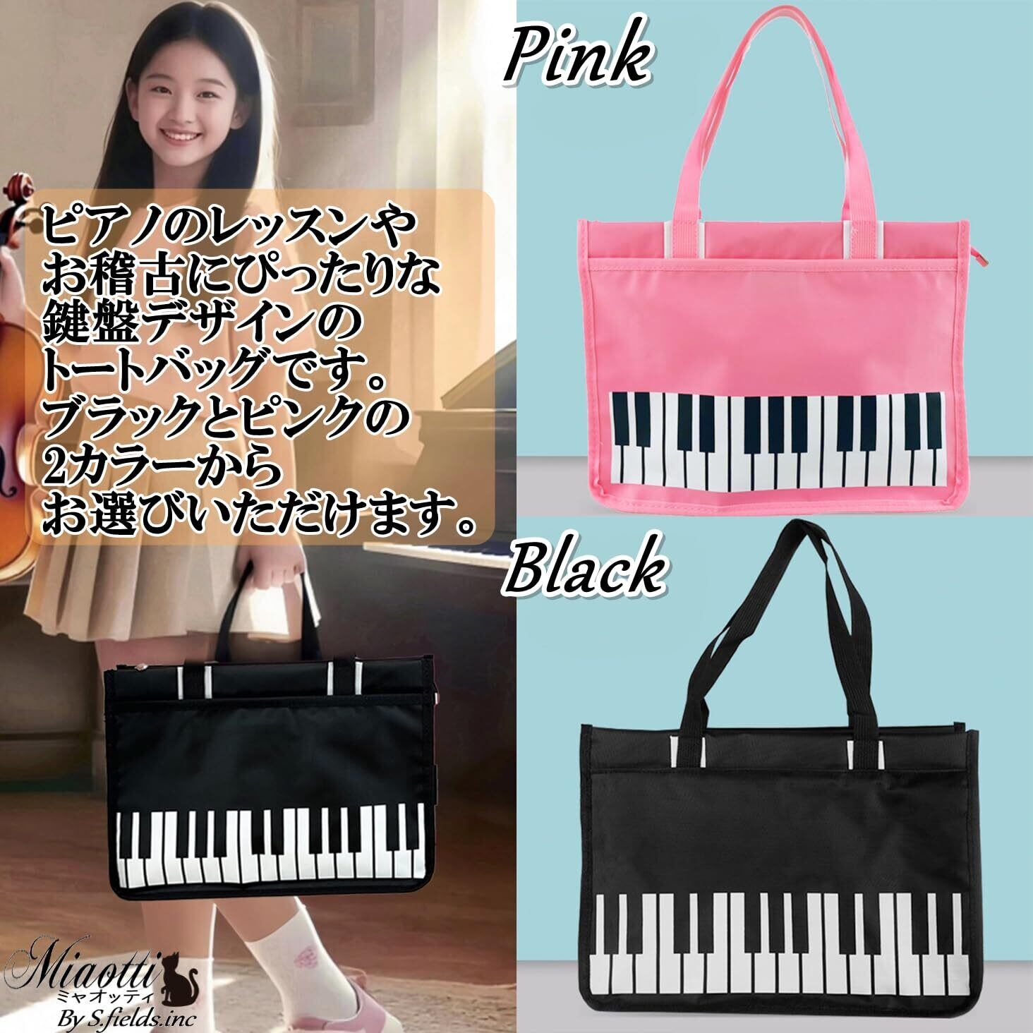 ピアノのレッスンやお稽古にぴったりな鍵盤デザインのトートバッグです。ブラックとピンクの2カラーからお選びいただけます。