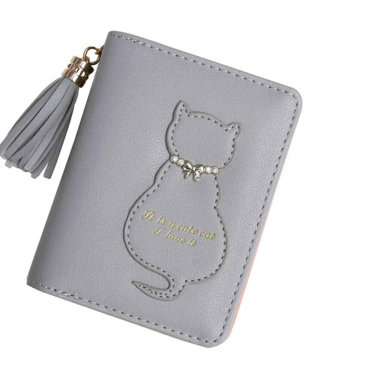 【新着商品】(ヒトクル) HITKUL 猫 財布 二つ折り 女の子 ファスナー プレゼント 子供 チャーム ネコ