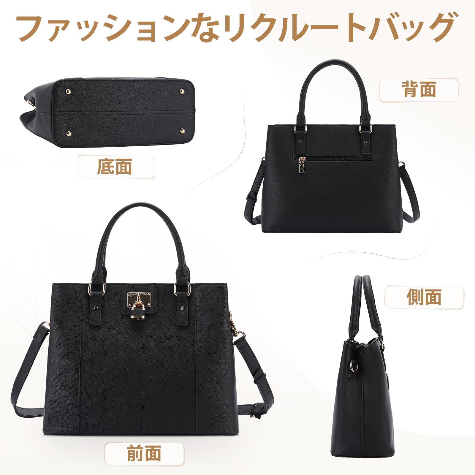 √高い機能性:VASCHYハンドバッグは撥水加工を施された高密度の素材を採用しており、耐久性と耐摩耗性に優れて、型崩れしにくく、丈夫でながくお使いいただけます。お洒落な堅固な金具も加えて、高級感溢れる見た目になっております。日常に実用的なビジネスバッグを必要とする人に最適です。