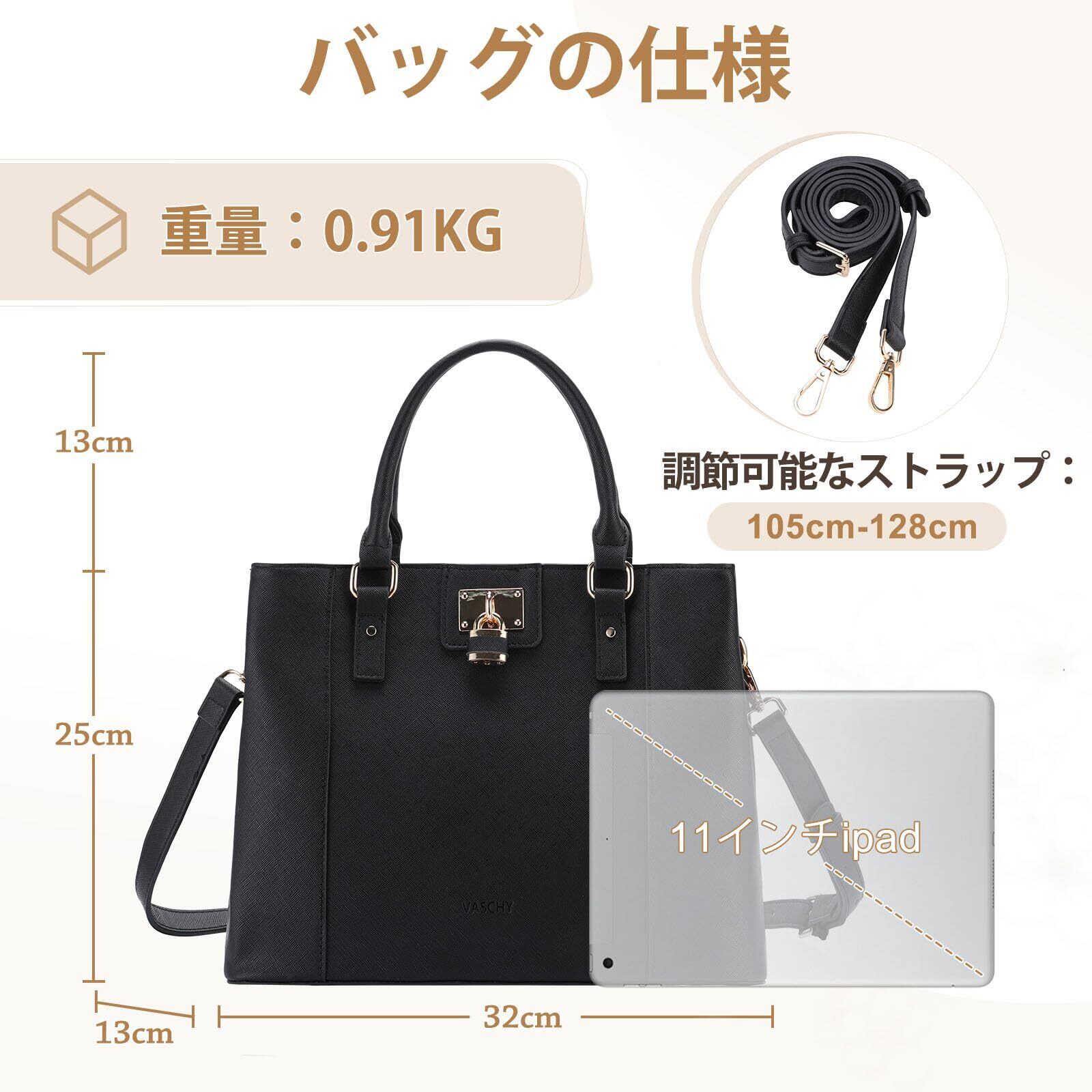[Vaschy] ハンドバッグ レディース, トートバッグ ビジネスバッグ 3way PUレザー 女性 バッグ 斜めがけ 肩掛け ショルダーバッグ カジュアル 通勤 通学 かばん