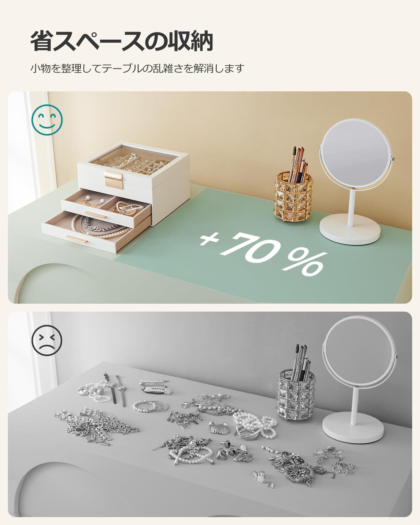 【3段収納】このジュエリーボックスには、小さなジュエリーは上部の層のさまざまなスロットに収納でき、サングラスや腕時計は大きな下の引き出しに収納できます。引き出しタイプで、ネックレス、ピアス、指輪などに合わせた専用スペースもありますので、必要なアイテムを簡単に取り出したり、しまったりできます。時間がないときでも迅速にアクセサリーを選ぶことができます。