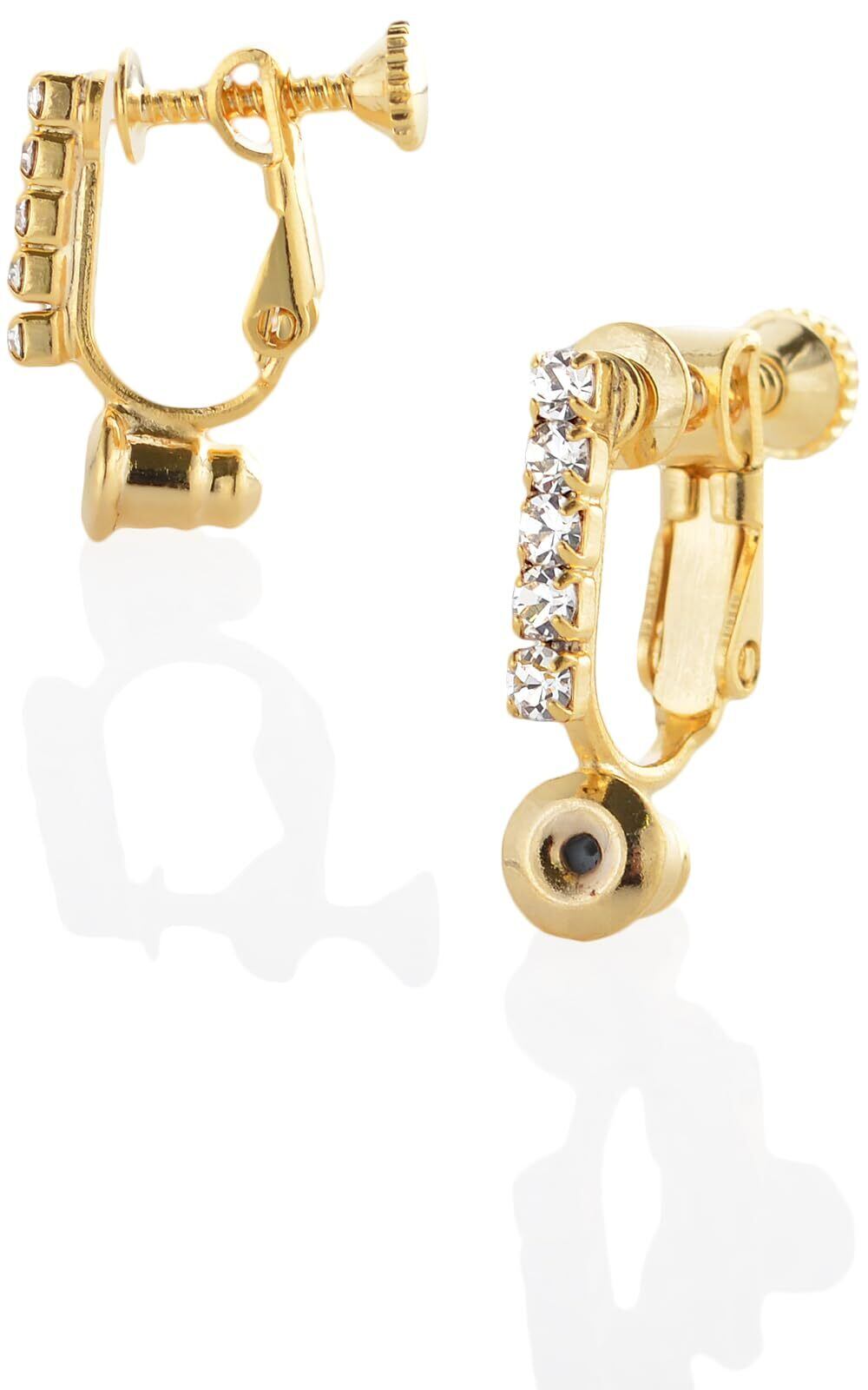 [R-days代官山] イヤリングコンバーター ネジ式 ゴールド シルバー 痛くない クリスタルダイヤレーン レディース 日本製 (ゴールド)