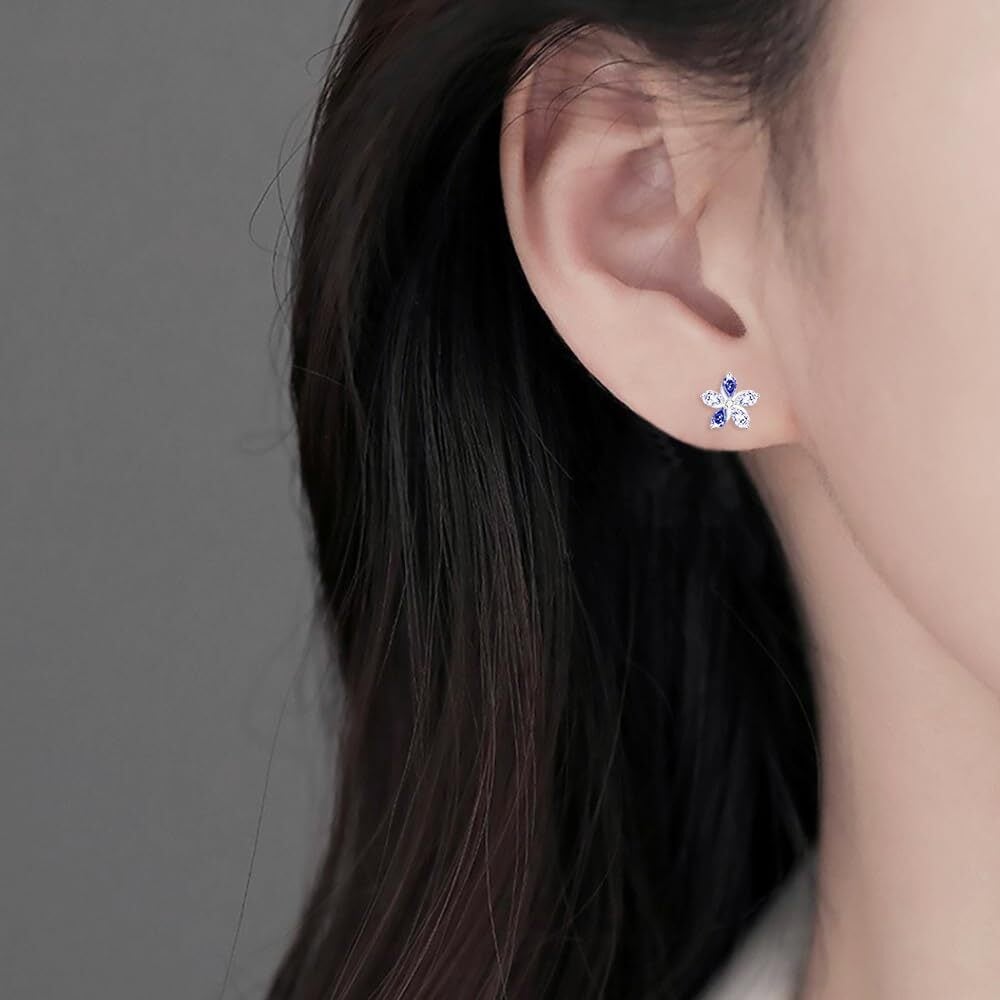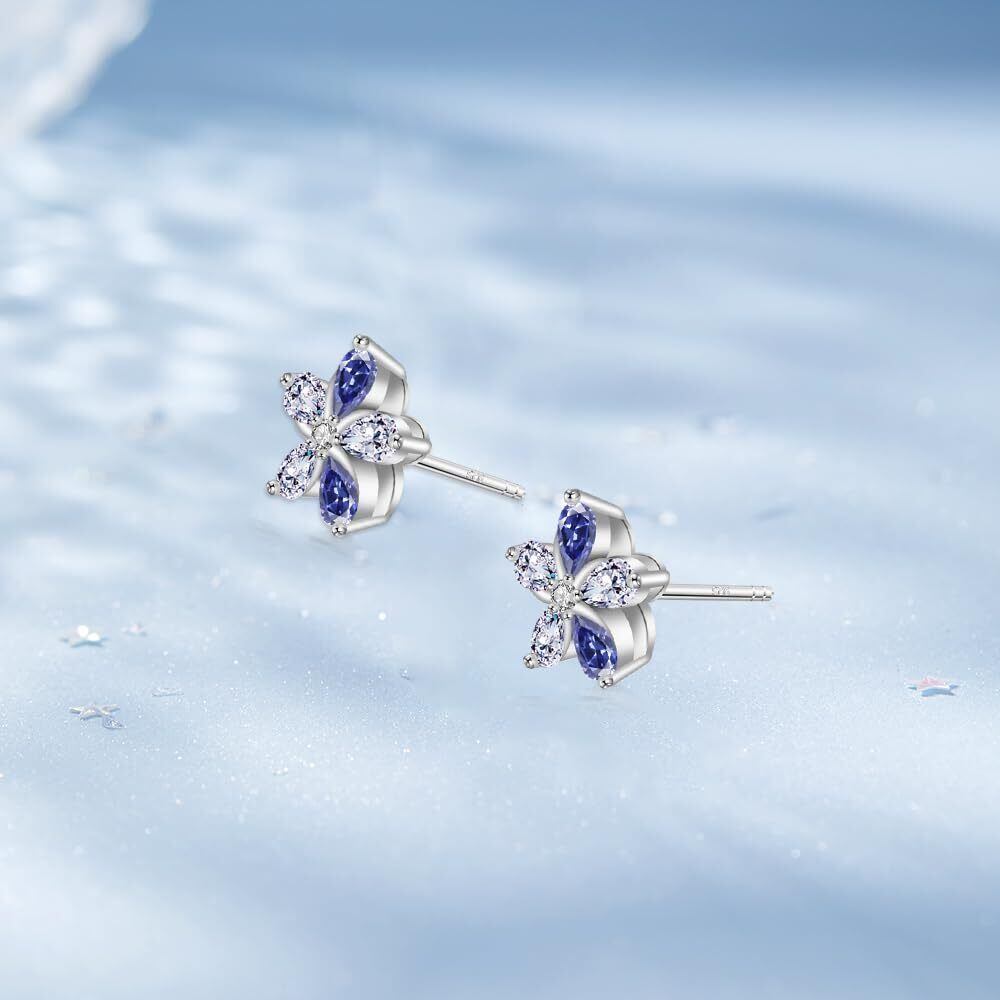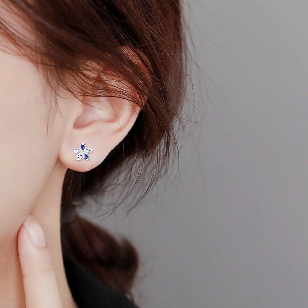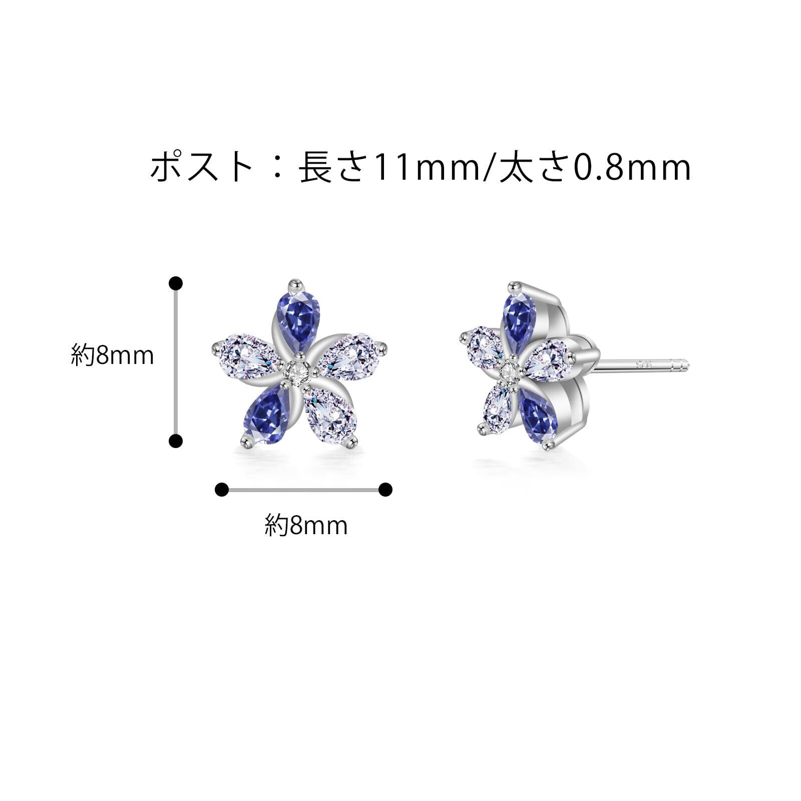 チェリーブロッサムピアス:淡い紫のアメジストと深みのあるタンザナイトが、桜の花びらの中に春の夜明けと星空を閉じ込めました。シルバーカラーの輝きが、クールで洗練された印象を演出し、知的で柔らかな美しさを引き立てます
