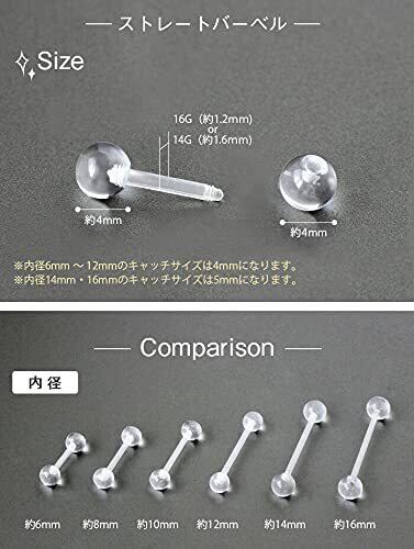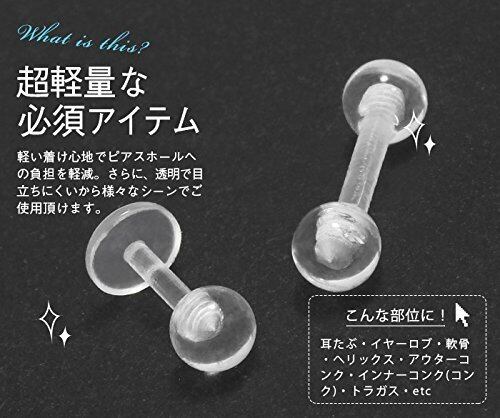[ROQUE] 透明ピアス シークレットピアス バイオフレックス ボディピアス 16G 14G バーベル ラブレット