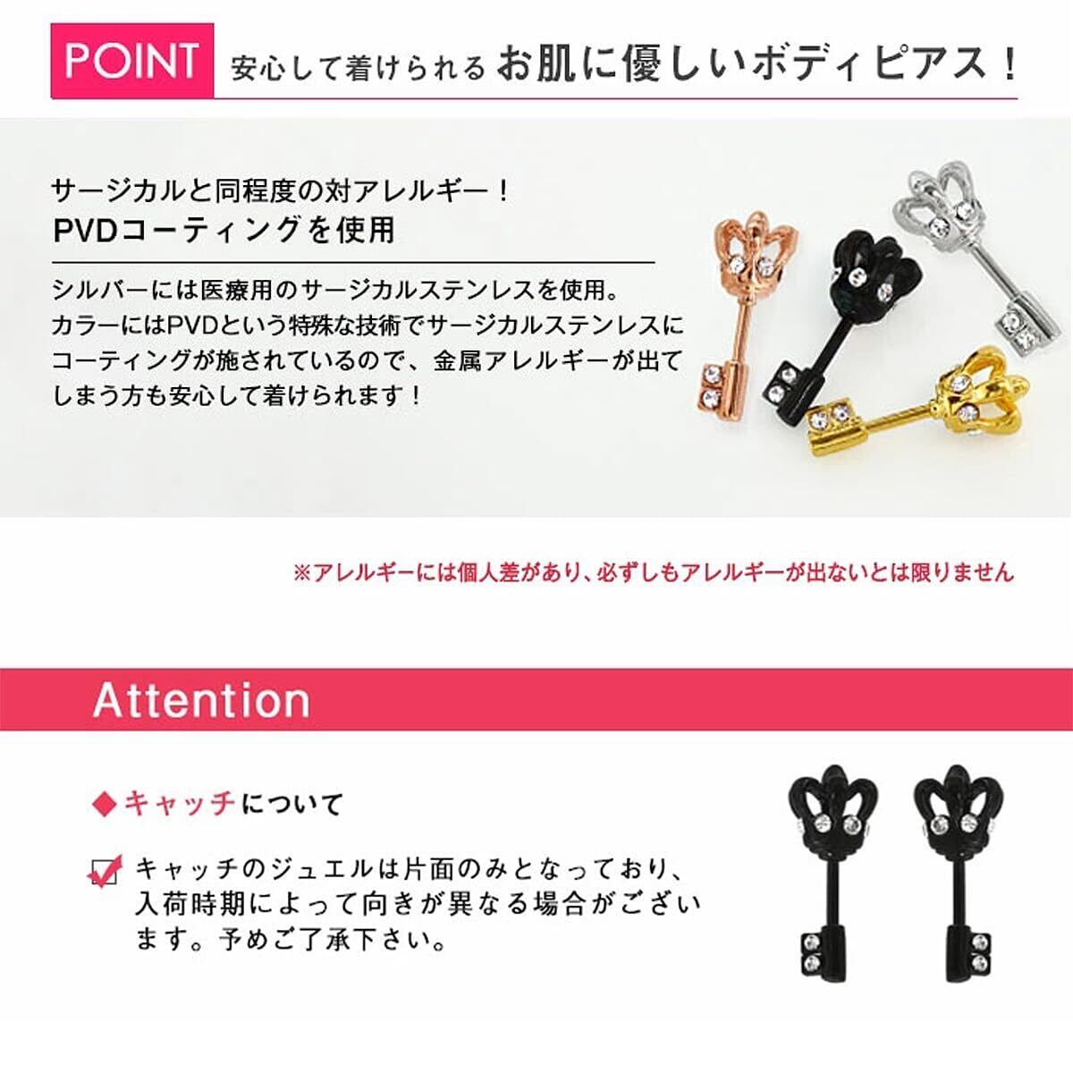 サージカルステンレスとPVDコーティングで金アレが出てしまう方でもお使いいただけます。
