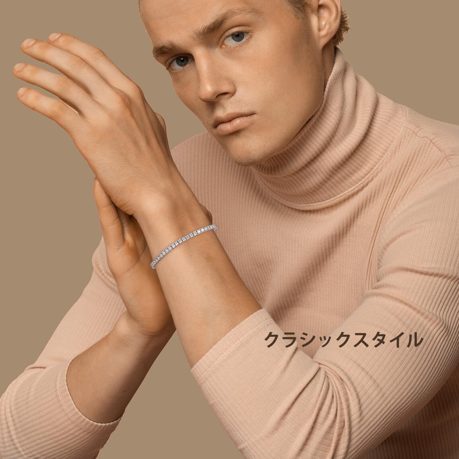 【手元を華やかに彩る】幅3mmの大粒CZダイヤストーンを贅沢に配置したラグジュアリーなテニスブレスレットです。ダブルロック式の留め具で紛失の心配のない設計。存在感がありながらシンプルなデザインで、男女問わず使えるのでペアアクセサリーとしても活躍してくれます。