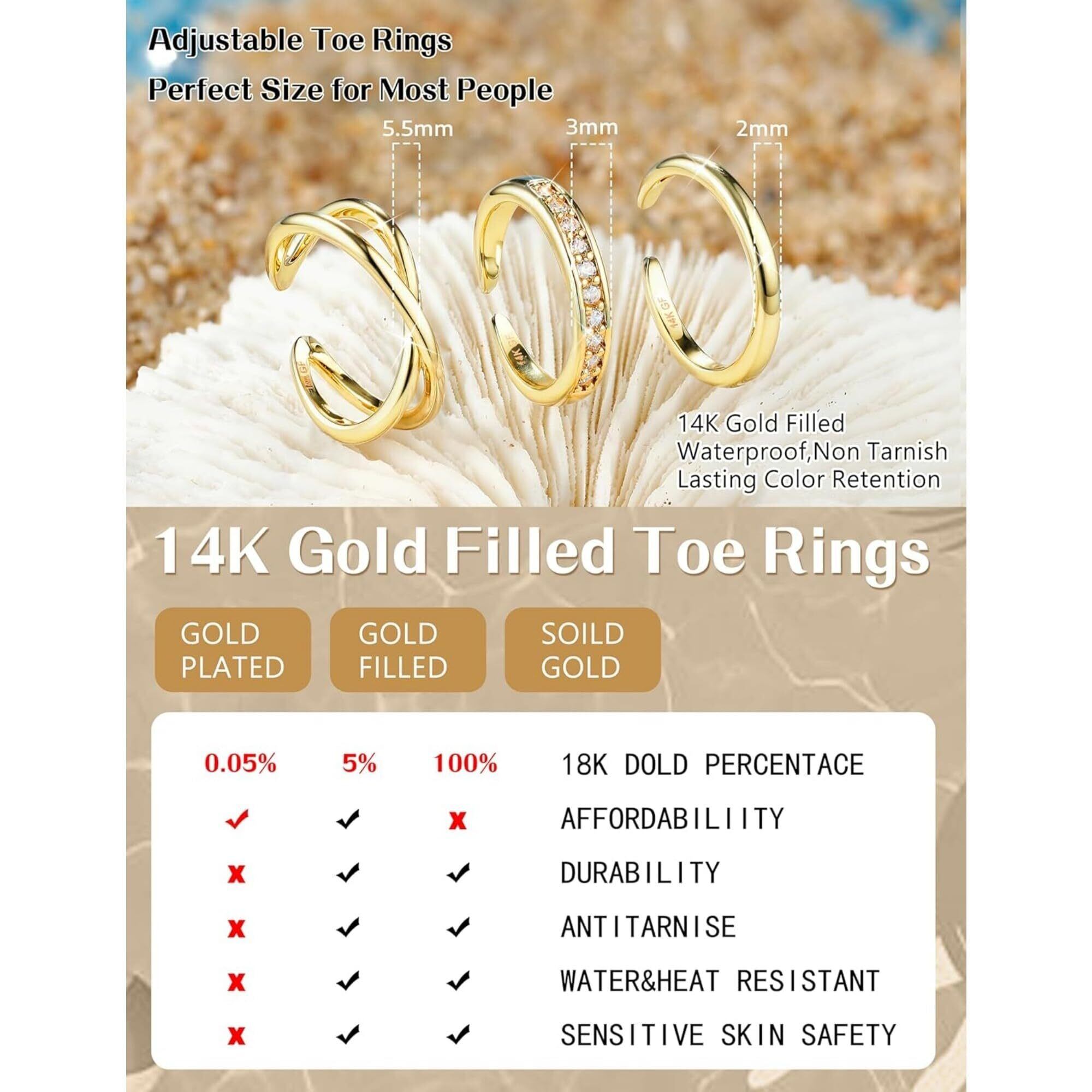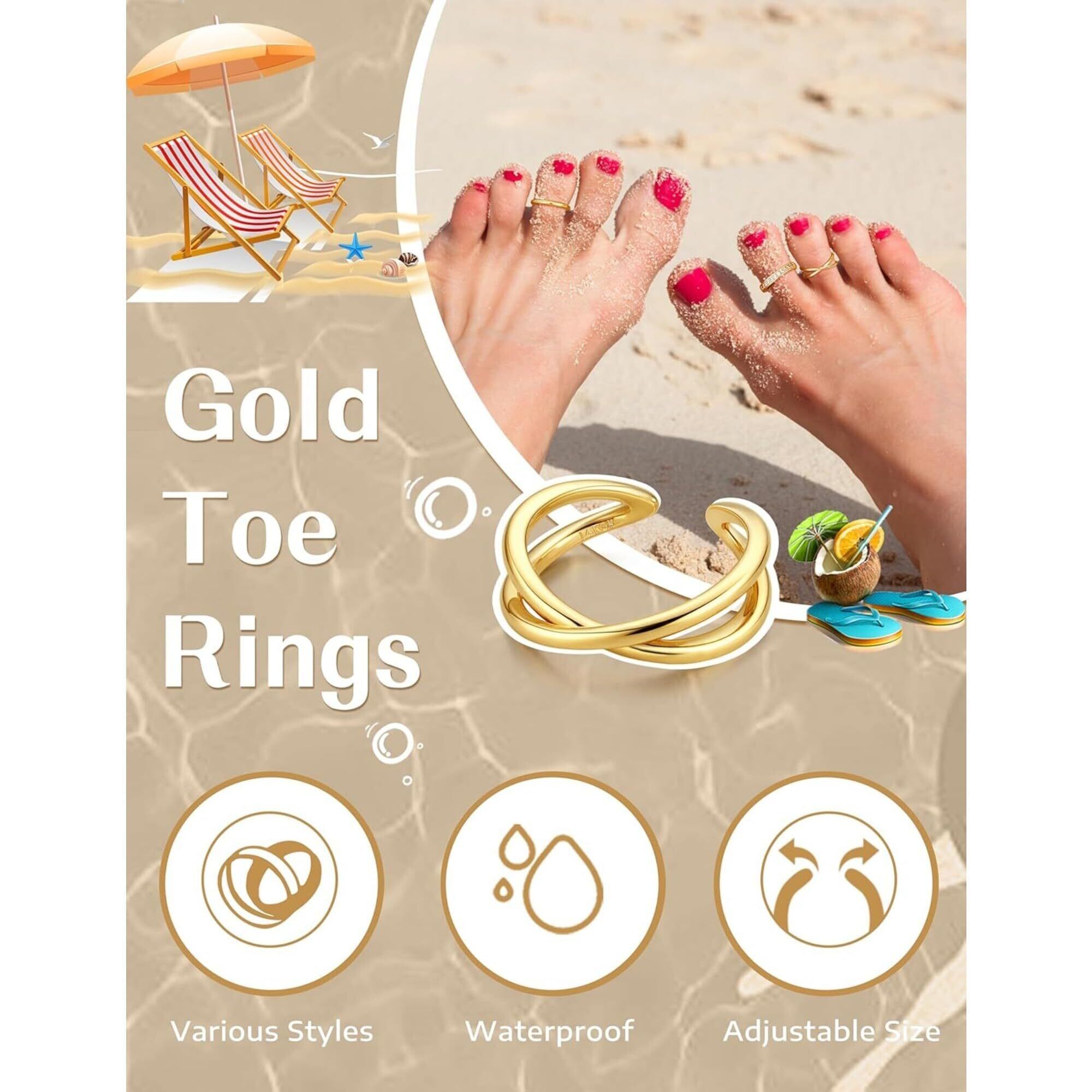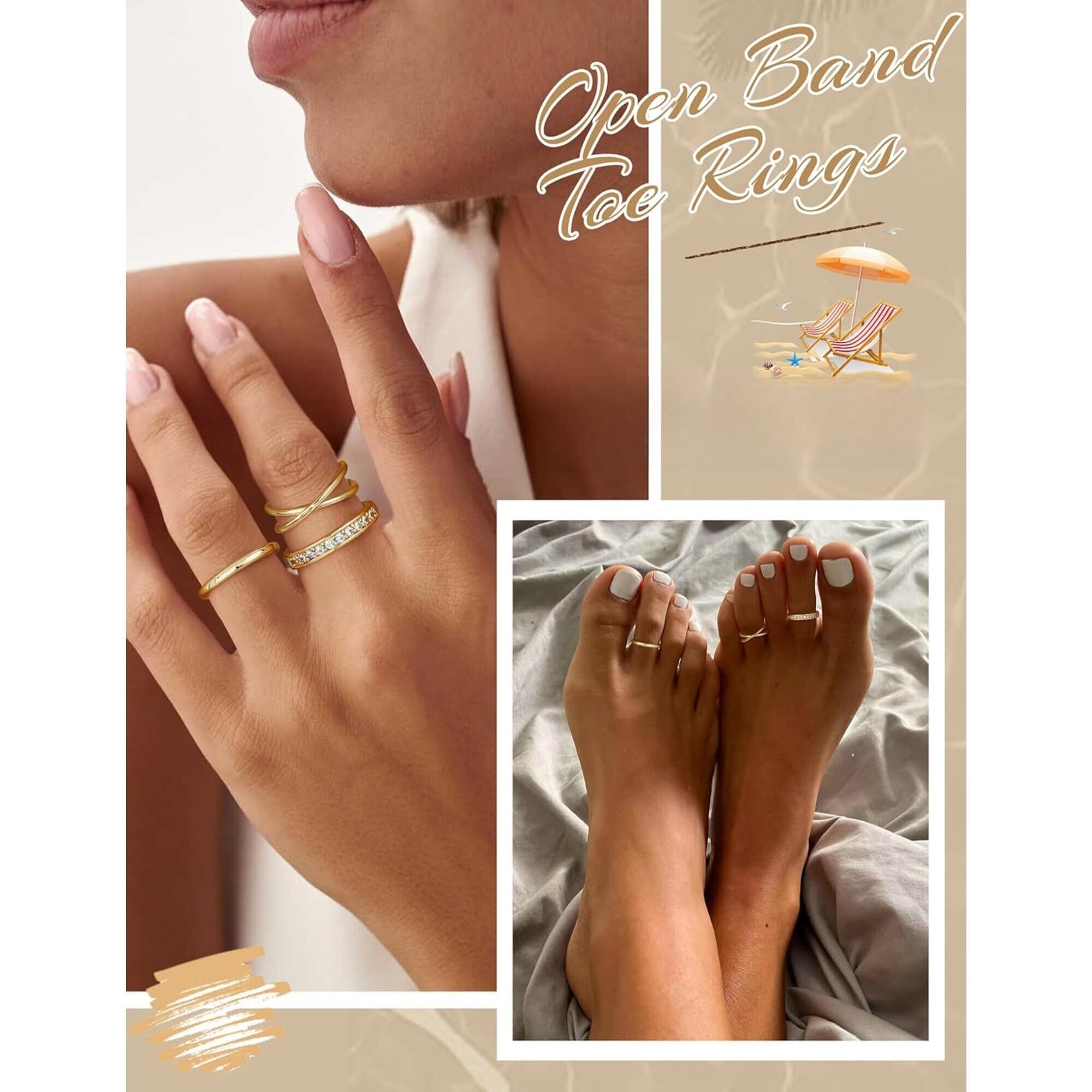 [Jstyle] 14K トゥリング レディース ゴールド セット 調整可能 リング 女性 足 指輪 夏 シンプル 日常 足 アクセサリー ジュエリー
