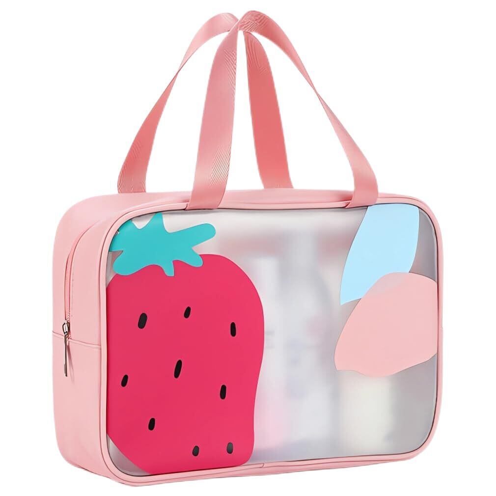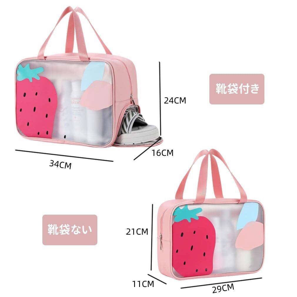 MARBEINE プールバッグ 女の子 半透明 ビーチバッグ 子供 水泳用 乾湿分離 ビニールバッグ かばん 手提げ 果物柄 キッズ 防水 収納バッグ スイミング スクール 水着バッグ 着替え ビーチ 水泳 温泉 旅行