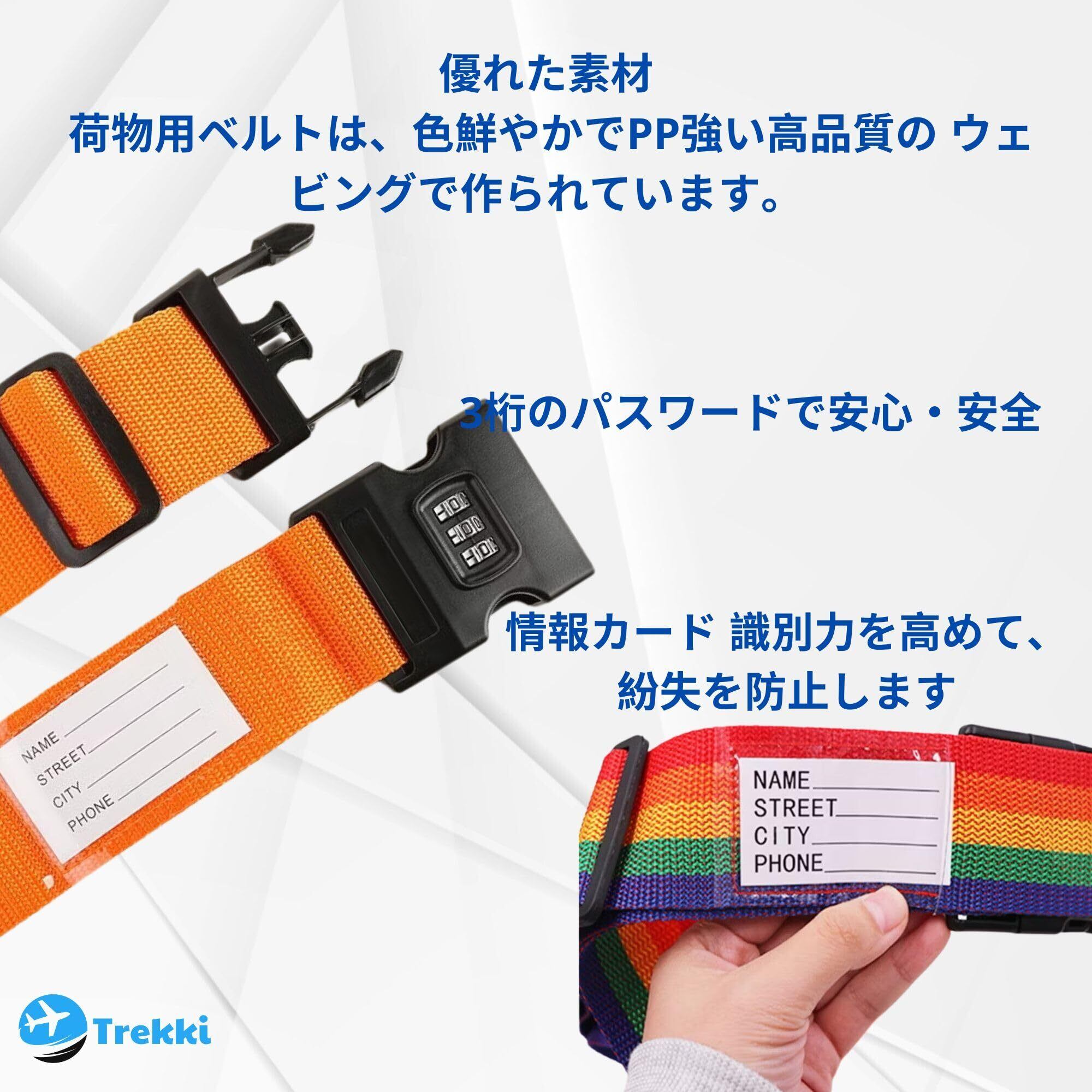 Trekki スーツケースベルト セット2個 [I字/十字] 盗難防止・荷崩れ防止 トラベルベルト 長さ調節可能 海外旅行・出張用 キャリーケース・トランク用 おしゃれで目立つデザイン(オレンジ)