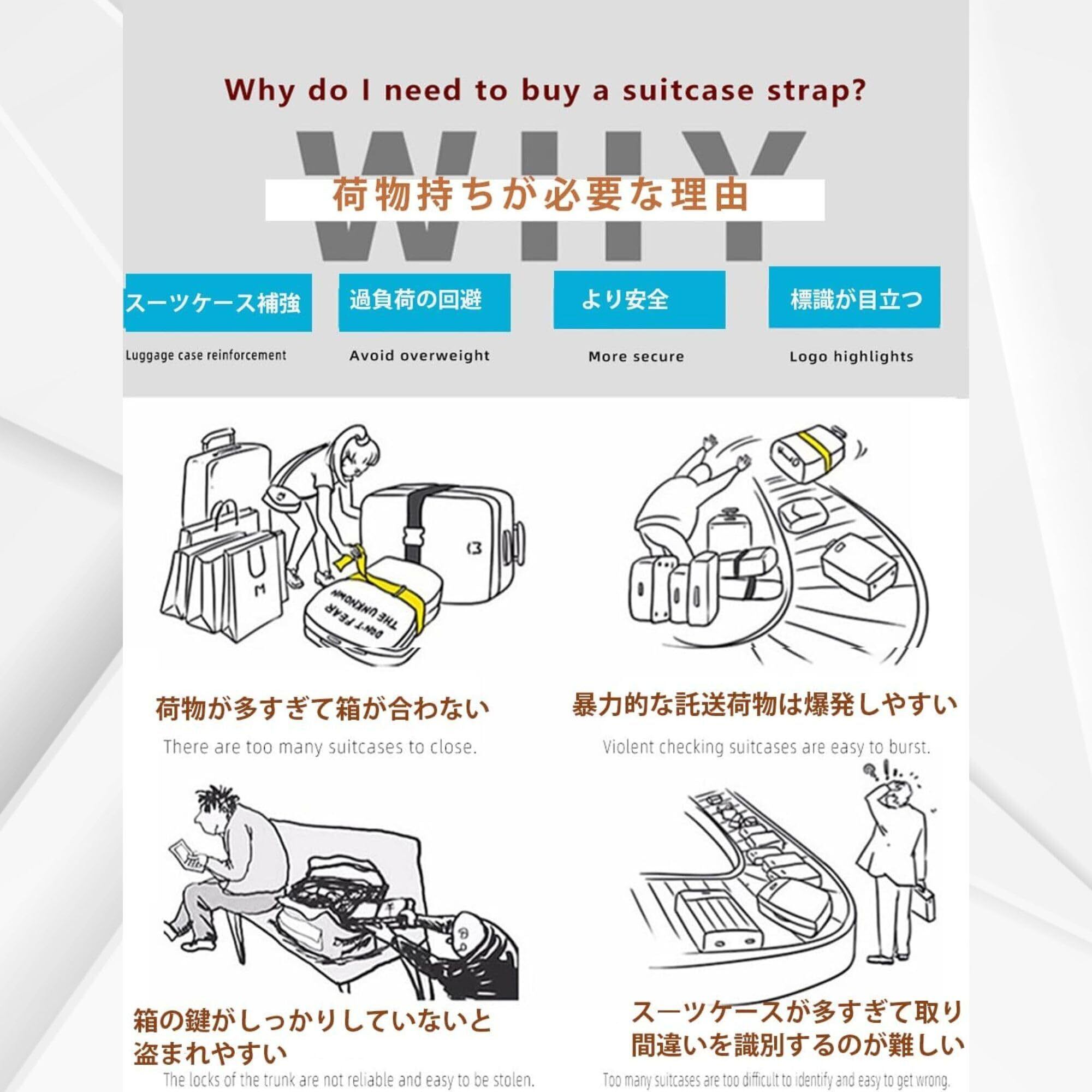 [頑丈で使いやすい] 高強度PP素材&3ケタのナンバーロック 伸縮性のある高強度PP製ベルトで長さ調整が簡単。セキュリティ面も安心、ロックにはお好きな暗証番号を設定でき、スーツケースの鍵代わりにもなります。