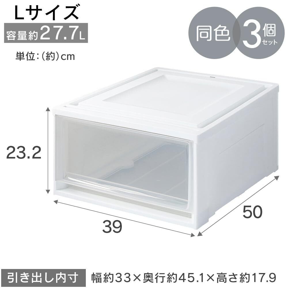 【3個セット】アイリスオーヤマ 収納ケース 衣替え 引き出し クローゼット 圧倒的高コスパ 衣替え 幅39×奥行50×高さ23.2cm ウォークインクローゼット 衣装ケース チェスト 日本製 ホワイト/クリア BC-L