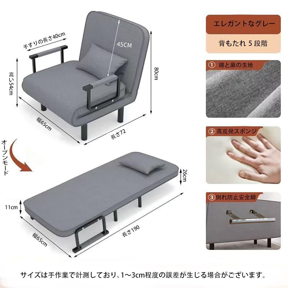 ソファベッド ソファーベッド 一人用 折りたたみ 座椅子3WAY 幅65cm 腰部5段階シングル コンパクト カウチ リクライニング マットレス ロー折りたたみソファーベッド 簡単収納 おしゃれ 一人暮らし 来客用フロアソファ(グレー)