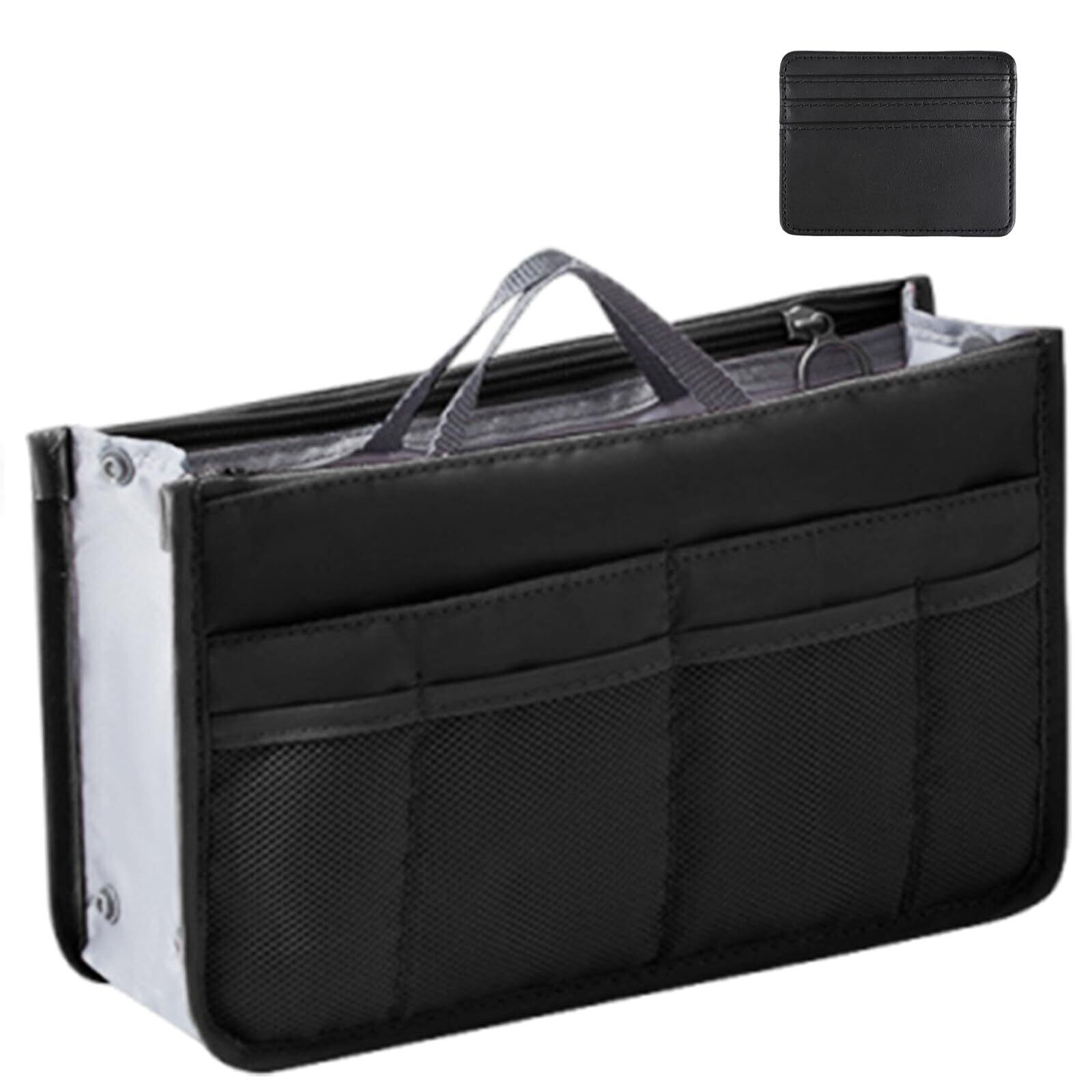 Senteria バッグインバッグ 軽量 自立 インナーバッグ バックインバック トートバッグ用 ファスナー カードホルダー付き 持ち手つき 大容量 薄型 小さめ 丈夫 防水 仕切り 収納 整理 収納バッグ ギフト贈り物 職人 通勤 ビジネス 旅行 メンズ レディース 橫長27×高さ16×幅9cm ブラック
