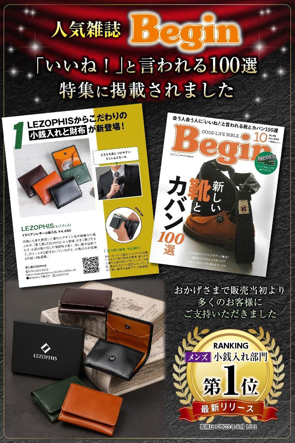 【新春セール】[LEZOPHIS] 小銭入れ メンズ 【人気雑誌 Begin 掲載商品】イタリアンレザー コインケース 本革 (ブラック)