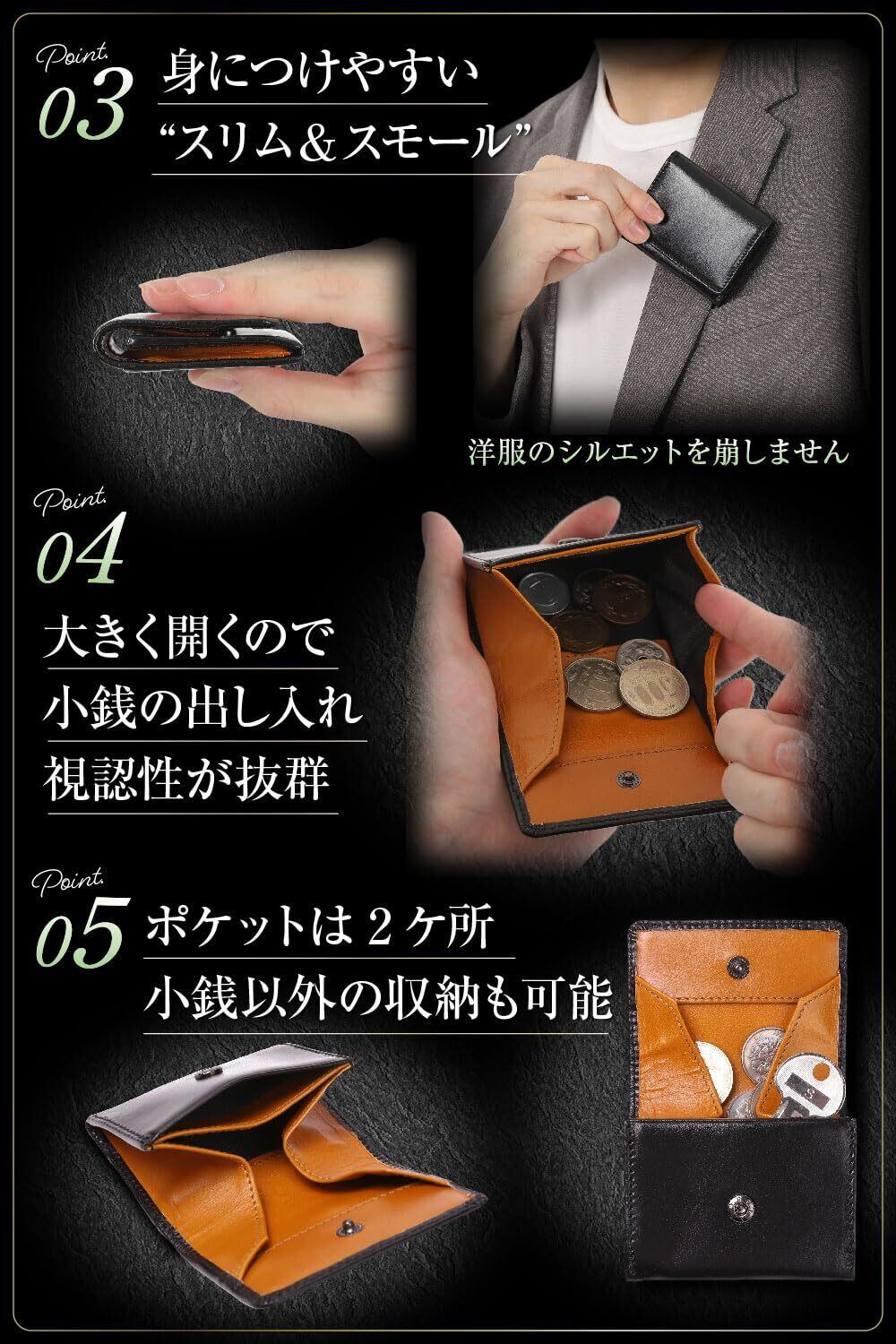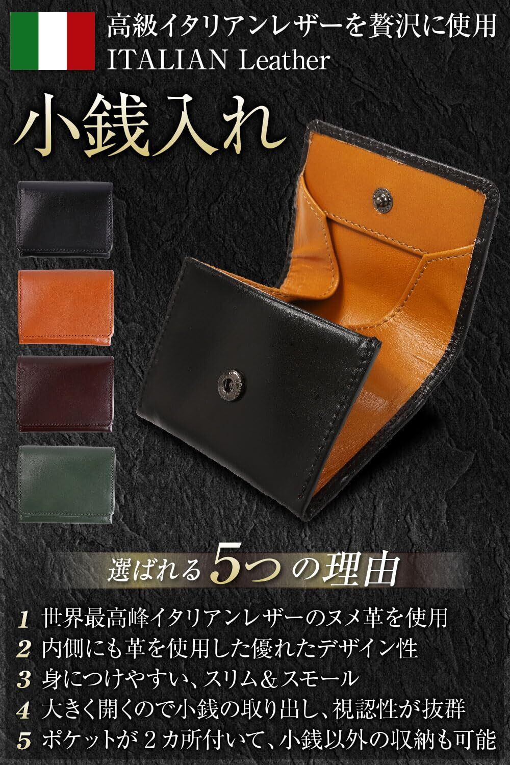 高級イタリアンレザーを贅沢に使用した小銭入れ