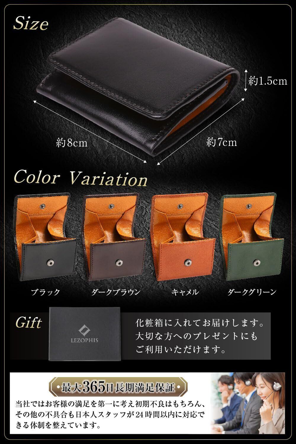 [LEZOPHIS] 小銭入れ メンズ 【人気雑誌 Begin 掲載商品】イタリアンレザー コインケース 本革 (ブラック)