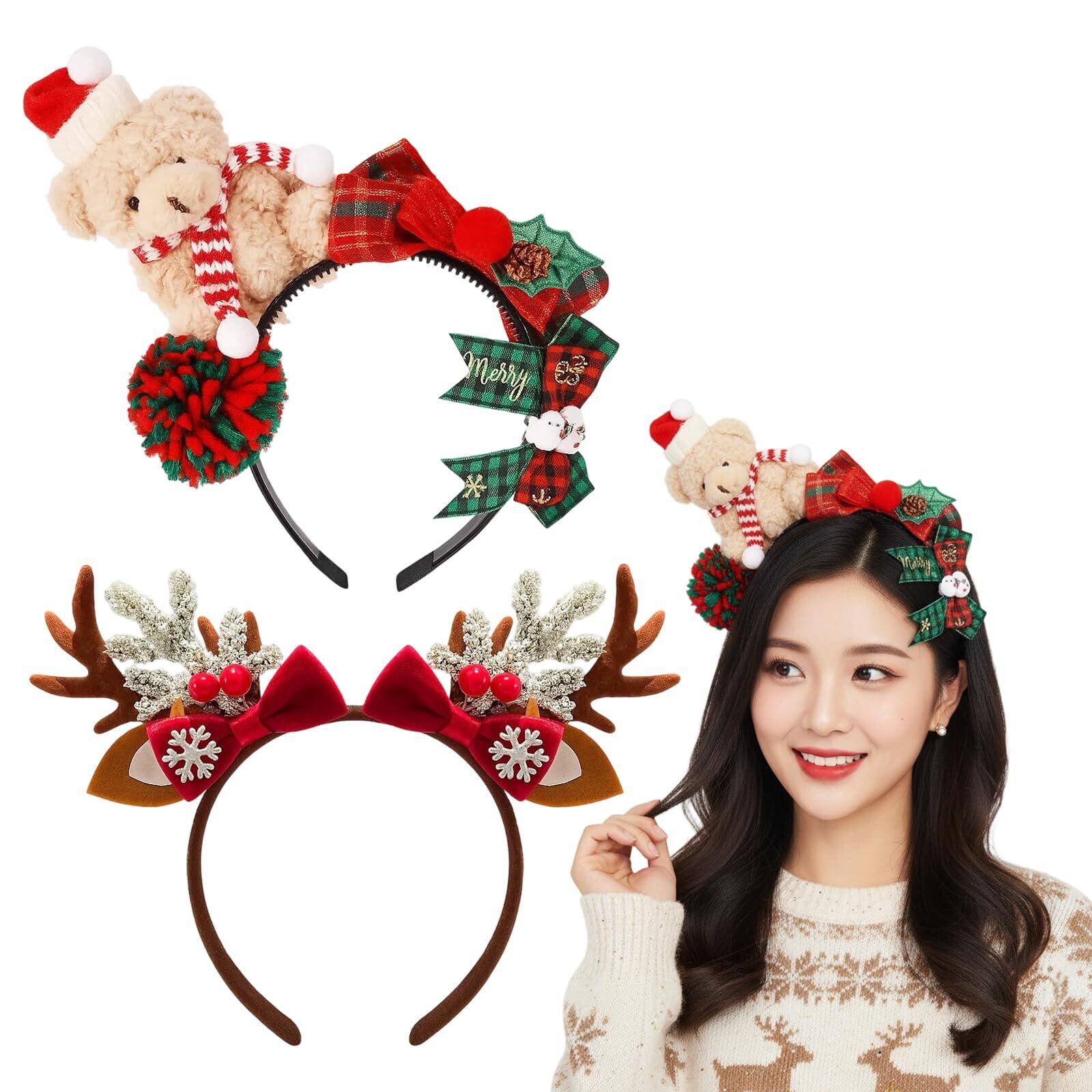 クリスマス カチューシャの2個セット: このクマのヘッドバンドとトナカイカチューシャグラフィックは、クリスマスのお祝いの雰囲気を盛り上げます; クリスマスリボンが付属しており、さらに華やかな印象に; プラッシュ素材を使用しており、柔らかくて快適な着け心地を実現;これらのヘッドバンドは非常に耐久性があり、使用しても簡単に壊れたり色褪せたりしません。伸縮性のあるデザインなので、ほとんどの方に適しています。