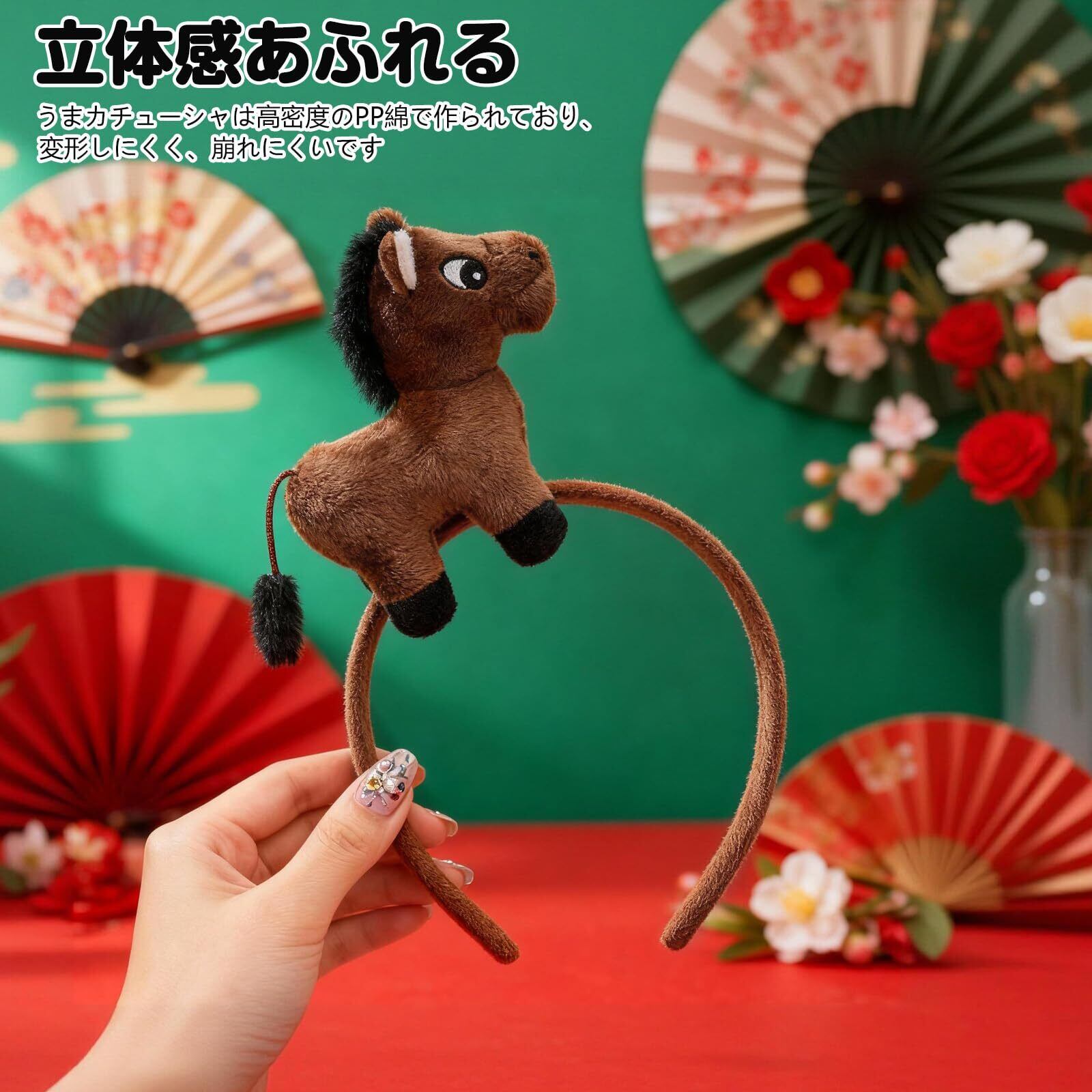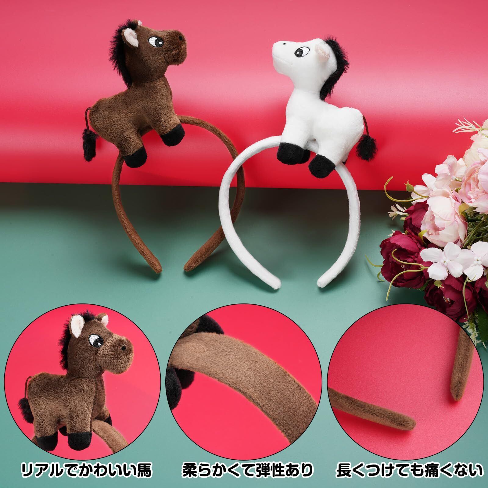 【立体感】馬カチューシャの上のぬいぐるみのうまは高密度のPP綿で作られており、変形しにくく、崩れにくいです。馬の尾が自由に揺れることができ、とってもかわいいです