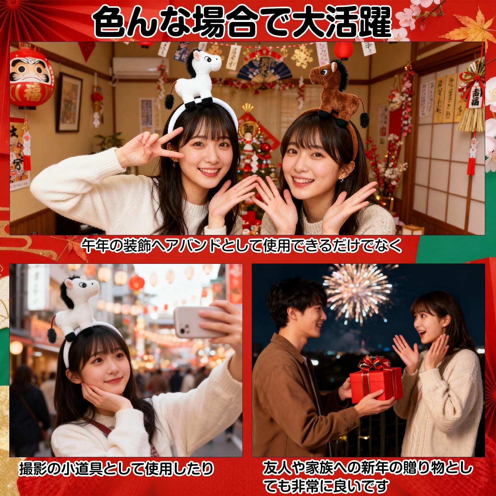 【午年のコスプレ】午年の干支をテーマにしたカチューシャです。馬カチューシャには一つ白い馬が飾られており、超可愛い馬ルックを演出します。午年に着用するのに最適です