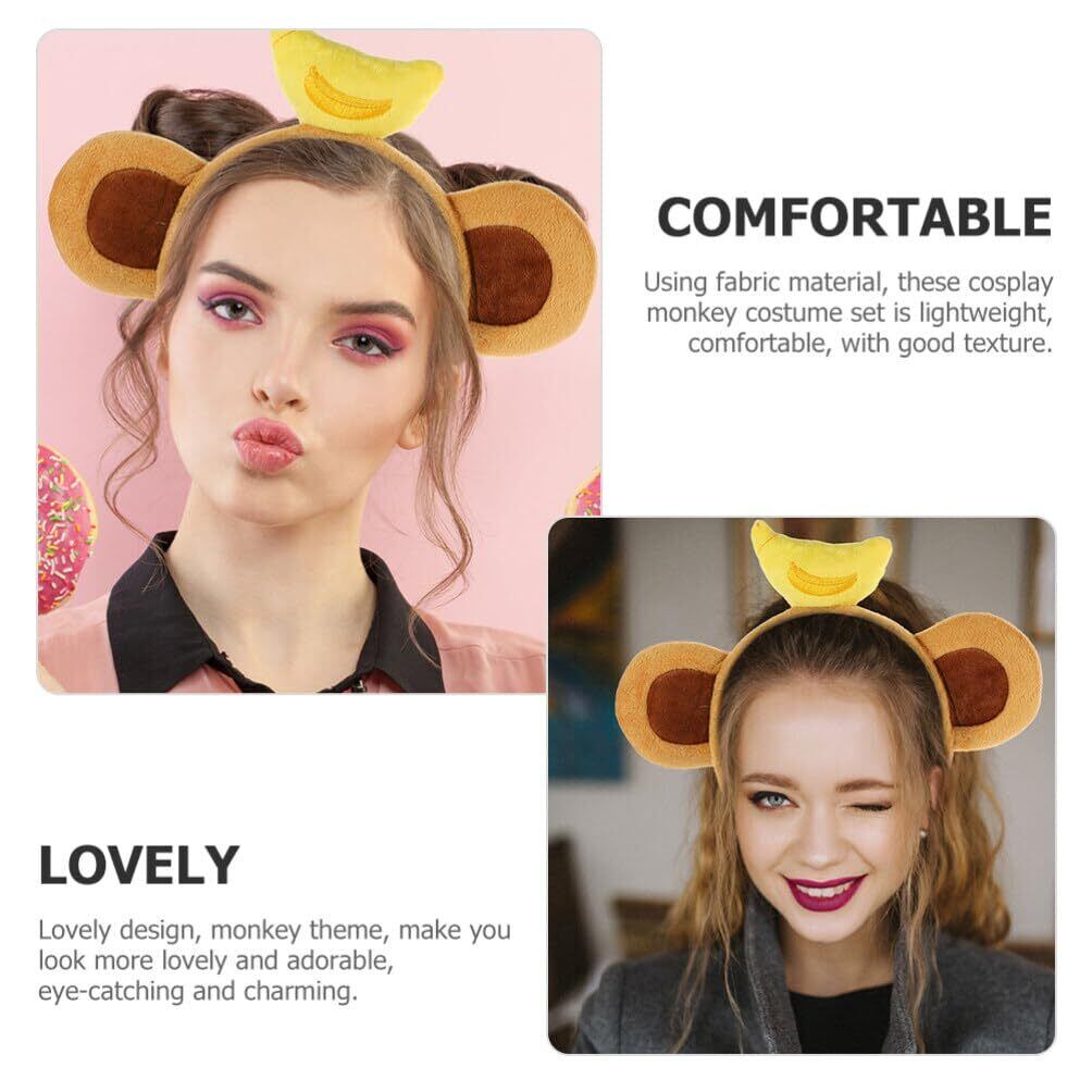 【特価商品】[Beaupretty] さる耳 カチューシャ 1 セット 猿 コスチューム チュチュ セット 猿 子犬 犬 耳 バナナ カチューシャ 蝶ネクタイ しっぽ 動物 ファンシー ドレス 衣装 コスプレ用 パーティー 装飾用