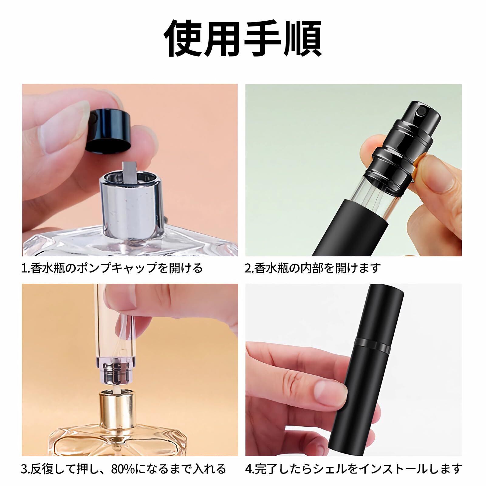 【使用手順】ステップ1:使用前に3〜5回押して空気を抜きます。 ステップ 2: 香水ボトルからスプレーヘッドとアトマイザーハウジングを取り外します。 ステップ 3: 空気漏れを防ぐために、アトマイザー本体を香水瓶の 4/5 の位置まで上下に押します。 アトマイザーに元の香水ボトルの 4/5 の量を入れます。