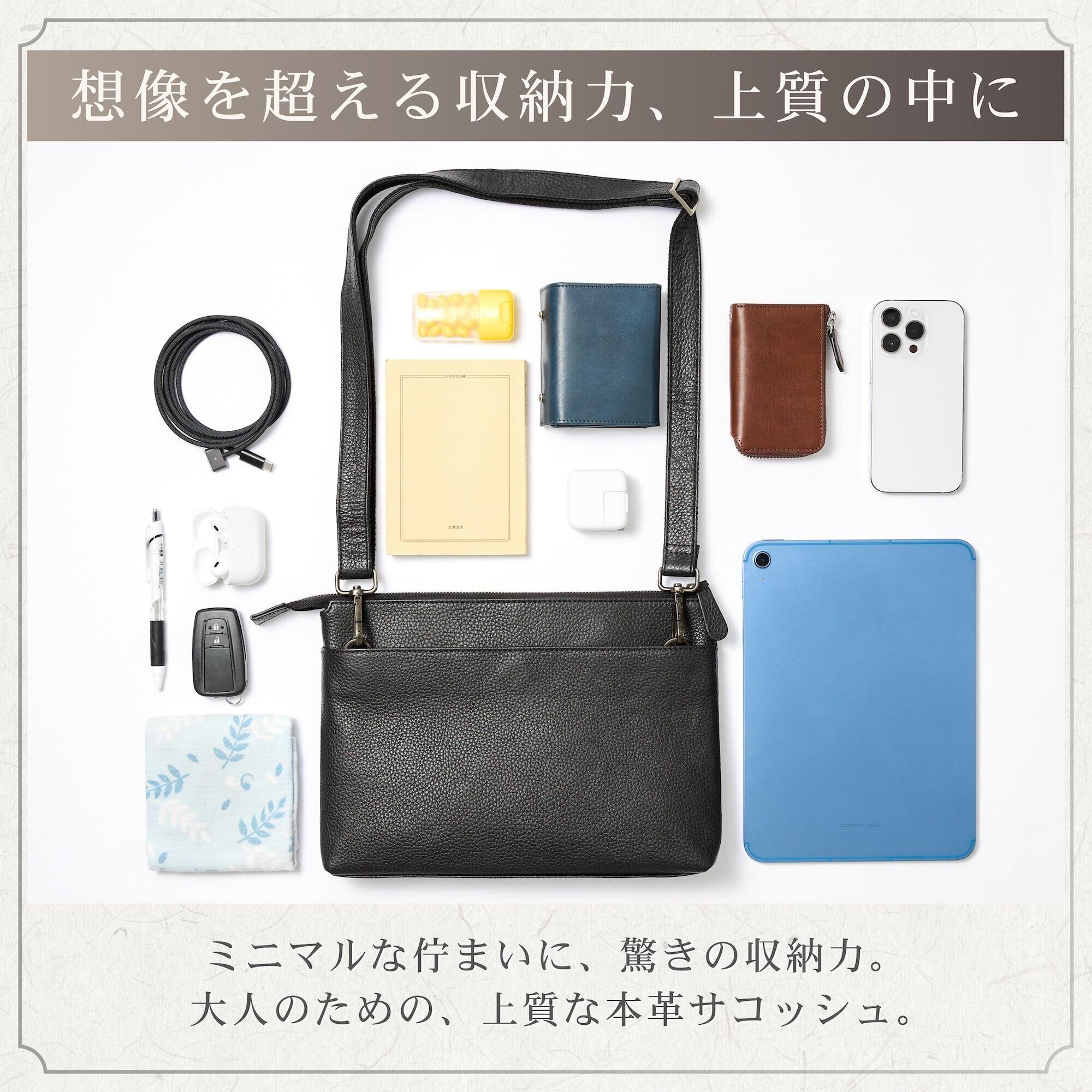 [エレディータ] サコッシュ ショルダーバッグ メンズ 本革 薄型 レザーショルダーベルト SC03