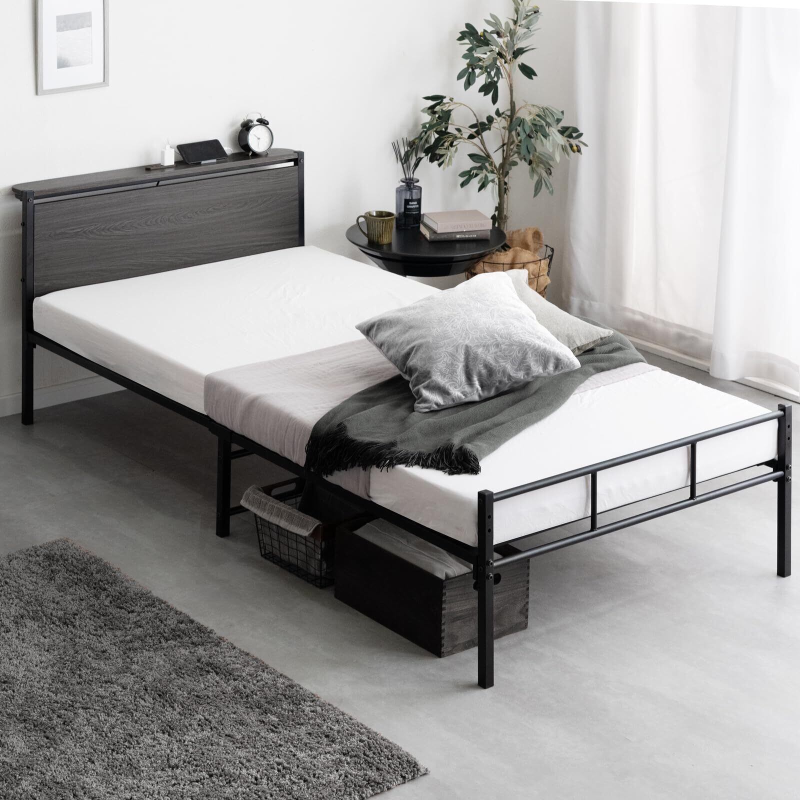 【備考】※組立時間は約20分です。(2人での組み立てを推奨) ※ページ内で使用しているマットレスの厚さは10cmです。 ※ページ内で使用している画像はシングルサイズです。セミダブル、ダブルサイズには中央脚がついております